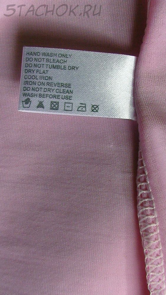 Следовать инструкции по стирке (ручная стирка, не отбеливать, не сушить в стиральной машине, не гладить горячим утюгом, не использовать химическую чистку)