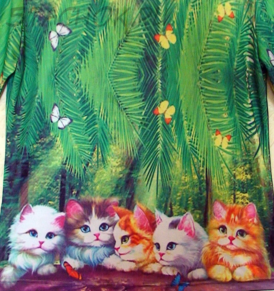 Кофточка с рукавом "Котята и бабочки в зелени" размер M (48)
