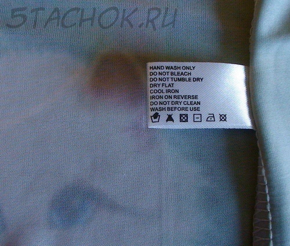 Следовать инструкции по стирке (ручная стирка, не отбеливать, не сушить в стиральной машине, не гладить горячим утюгом, не использовать химическую чистку)