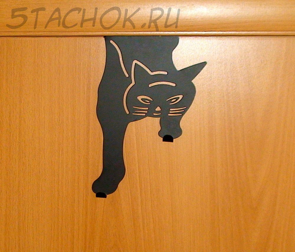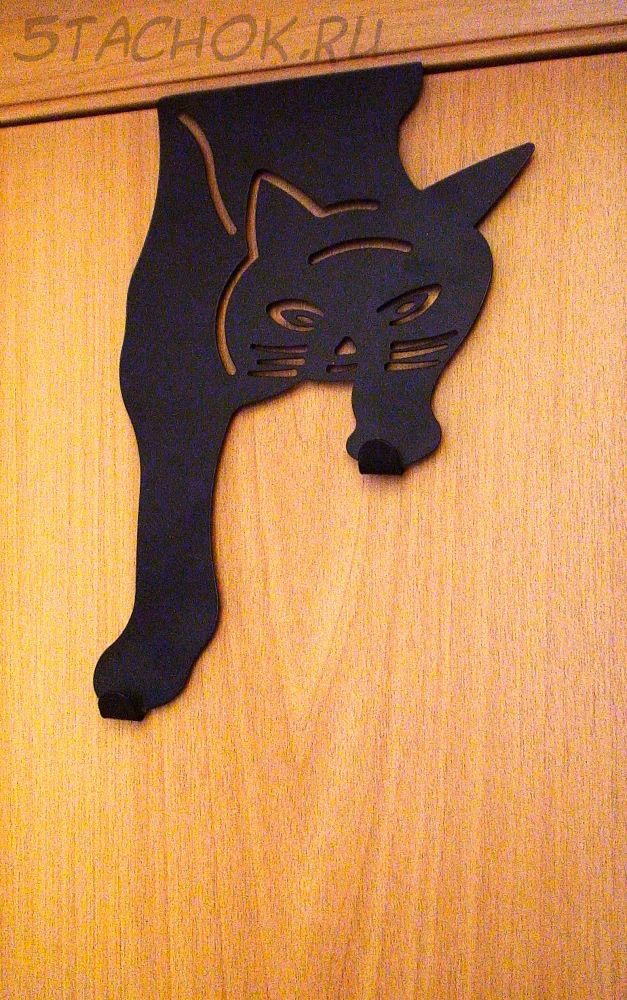 Удобный стильный крючок в виде черной кошки, а точнее 2 крючка - царапки на ее лапках, украсит интерьер вашей комнаты или ванны. Изготовлен из прочного металла, надевается на дверь.