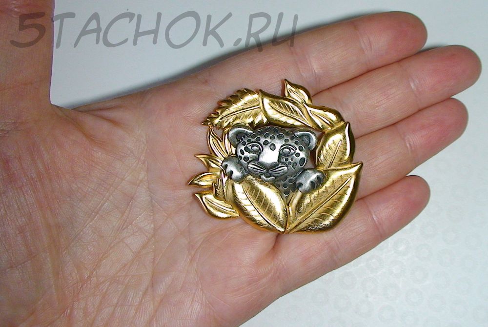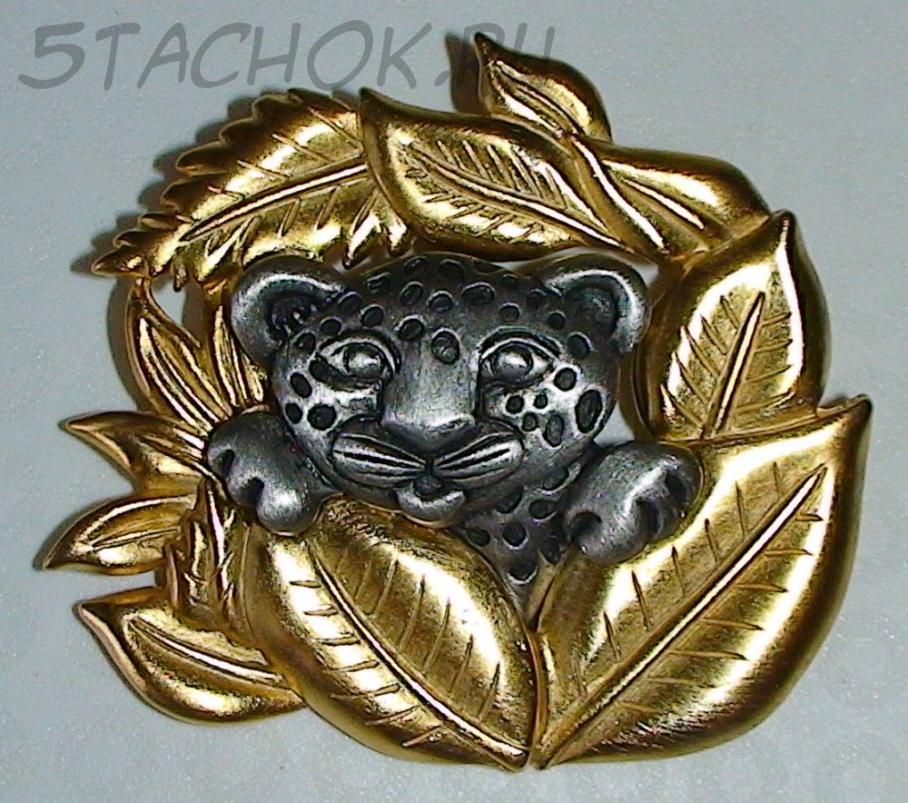 Брошь "Леопардик в джунглях" под олово и золото