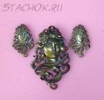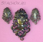Набор Брошь и серьги-гвоздики "Дама" под бронзу