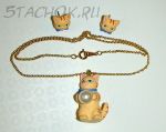 Набор колье и серьги-гвоздики для девочки "Котенок с мячиком"