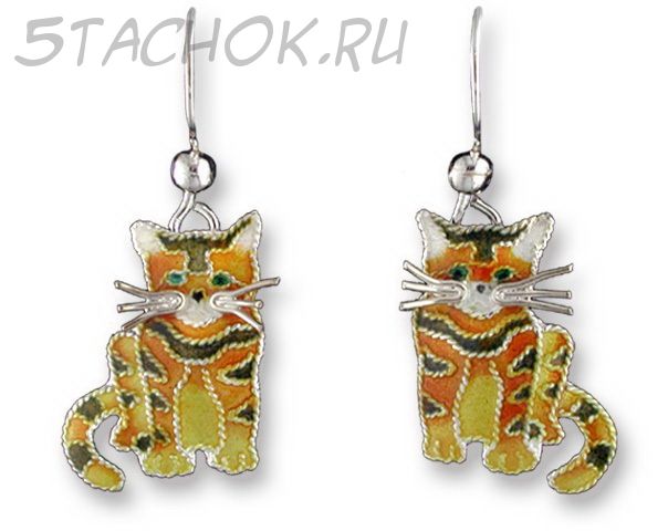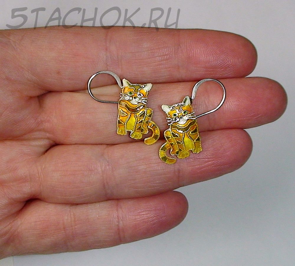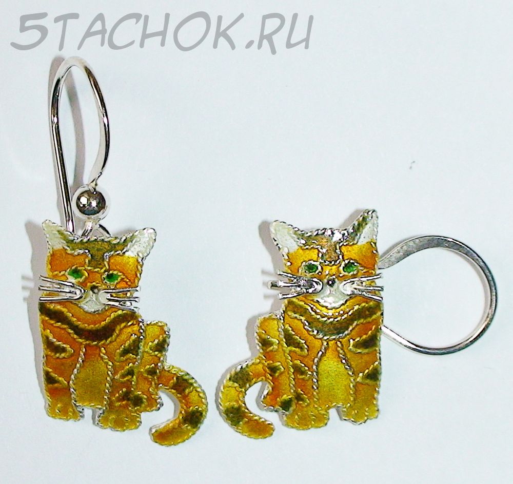 Серьги "Рыжий котенок" серебро 925, ювелирная эмаль