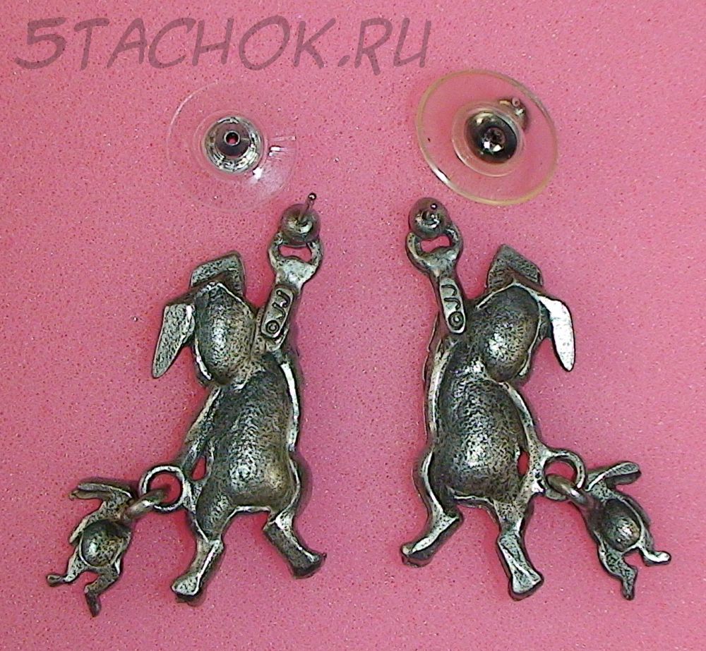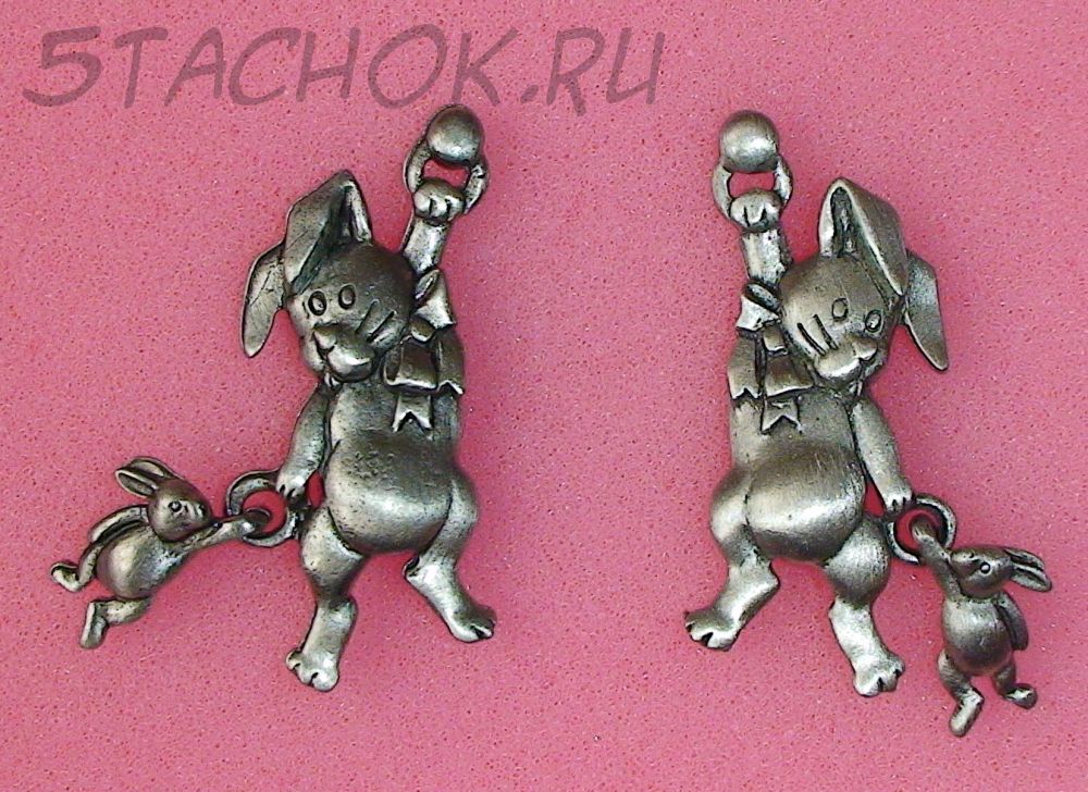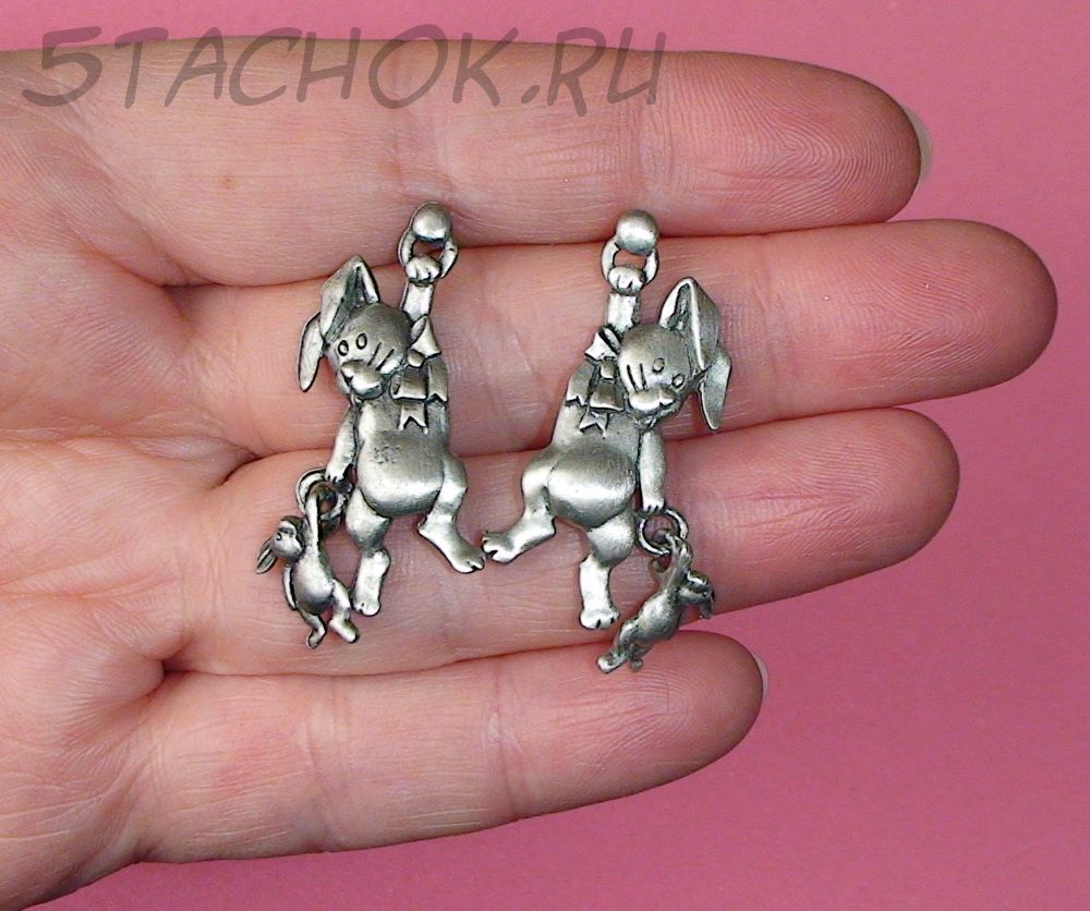 Серьги-гвоздики "Зайка с зайчонком" под олово