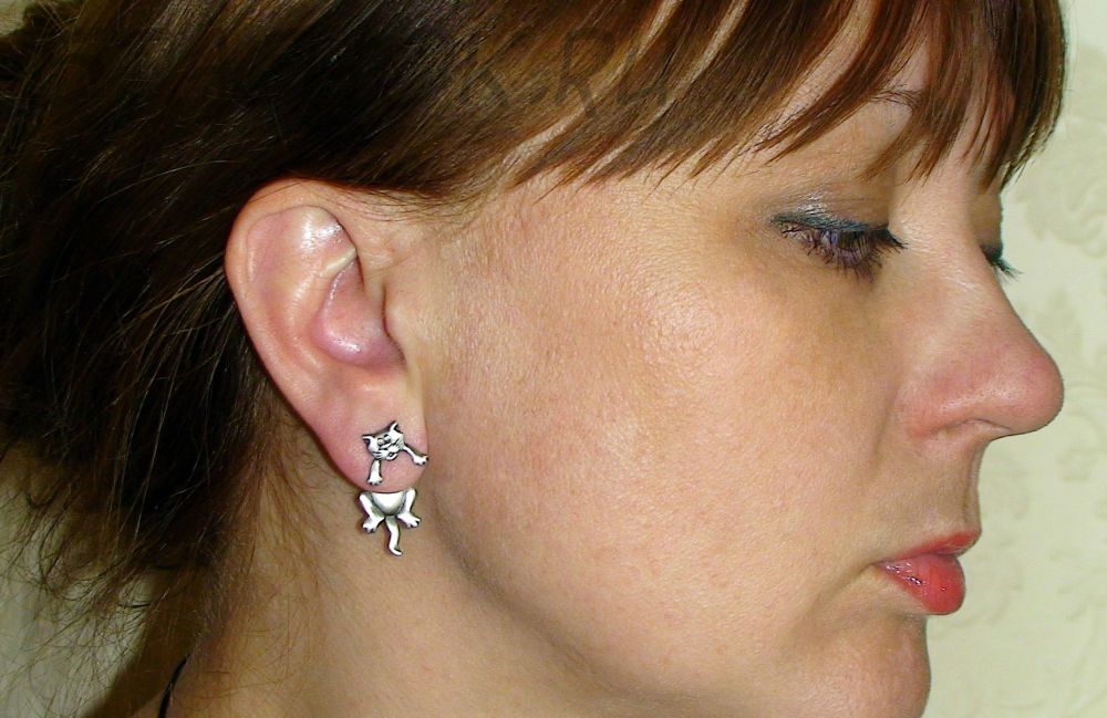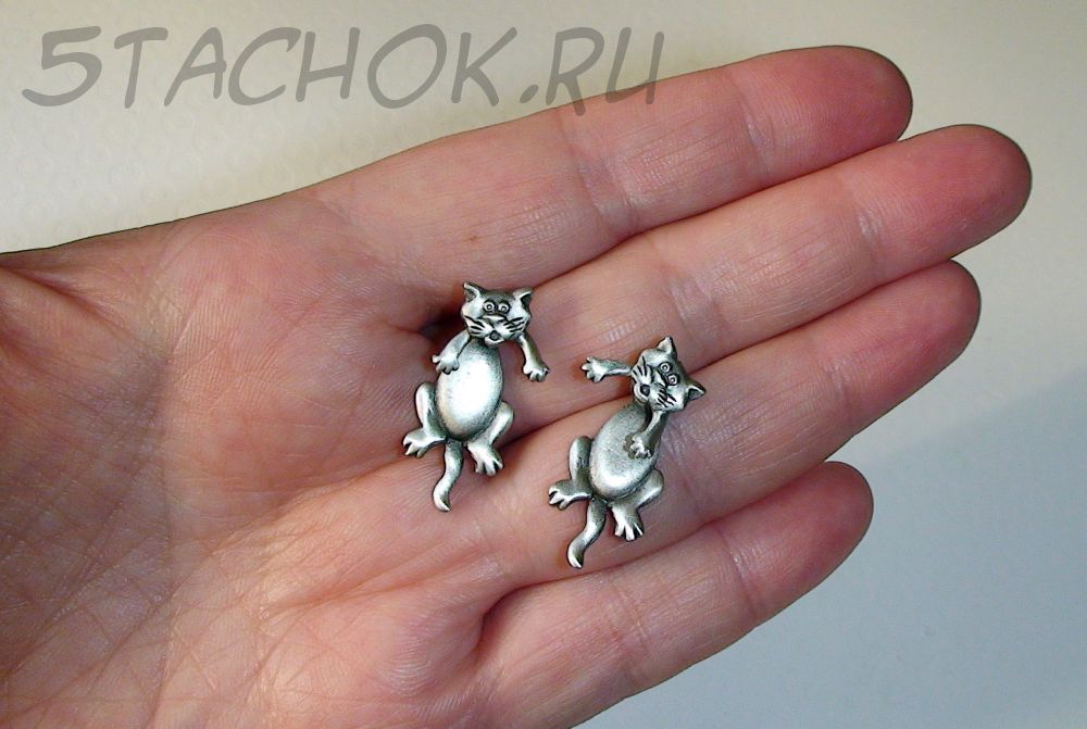 Серьги-гвоздики "Котики" малые под олово