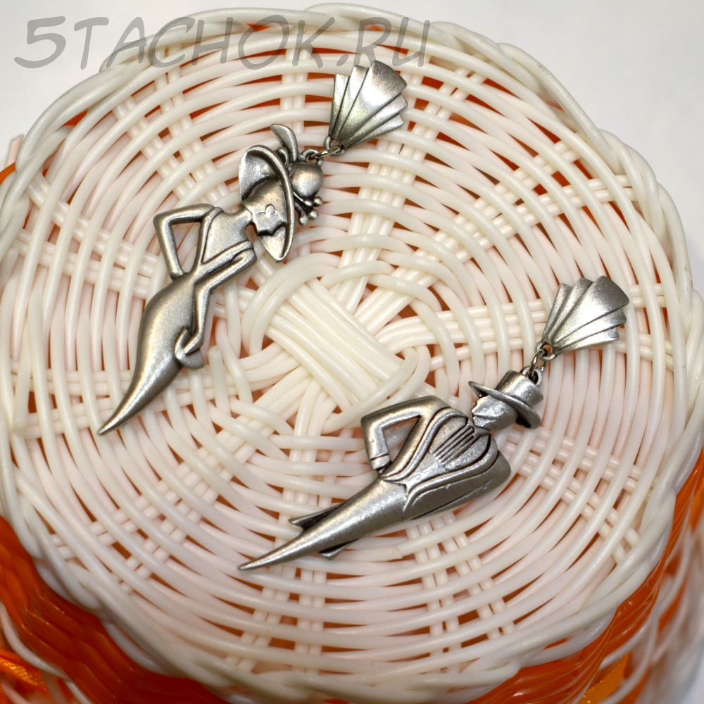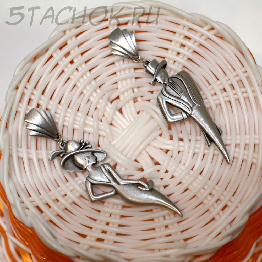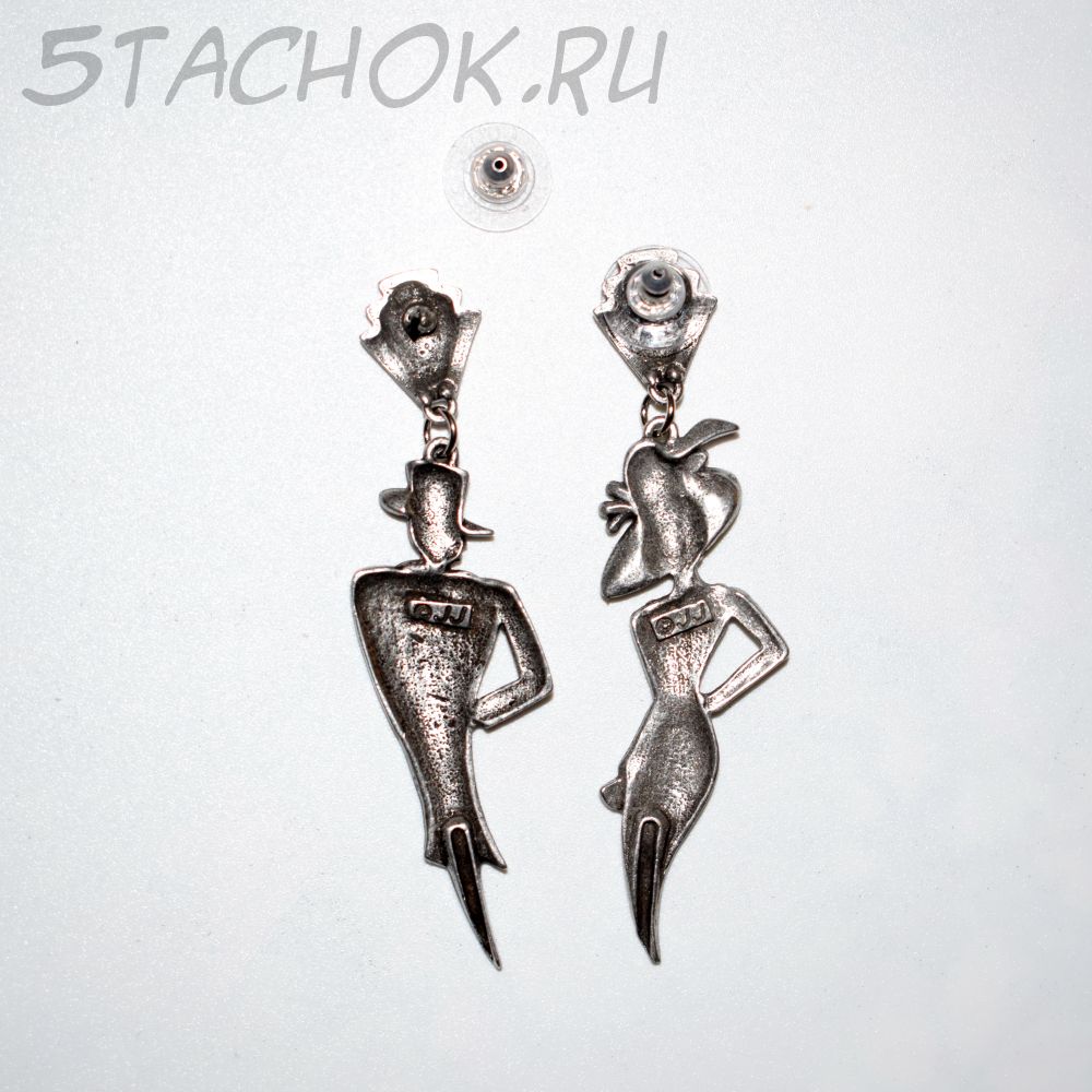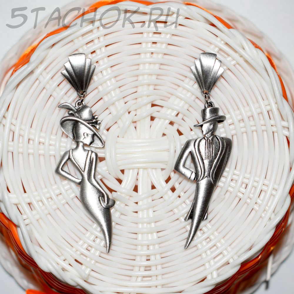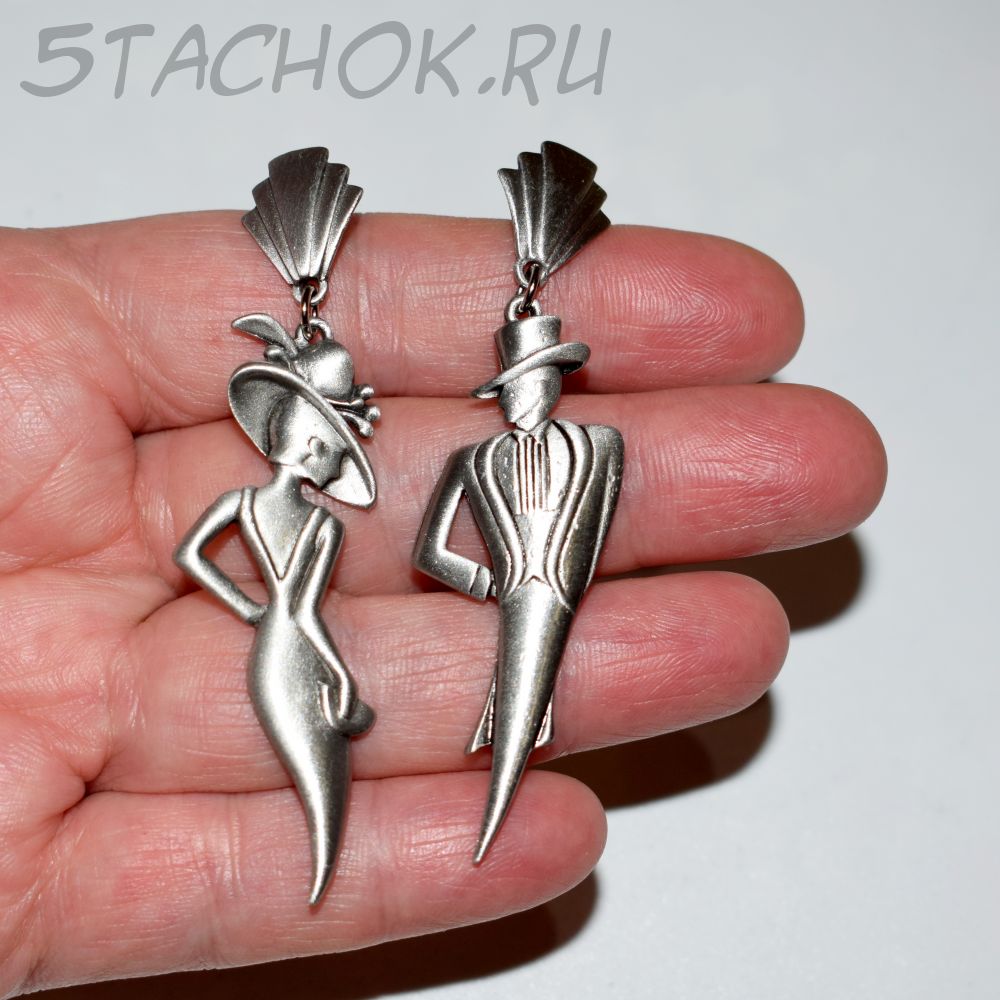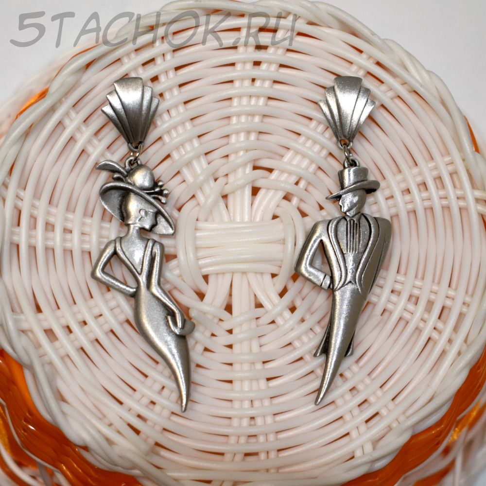 Полный размер серьги с застежкой "Он" и "Она" 2*7.5 см