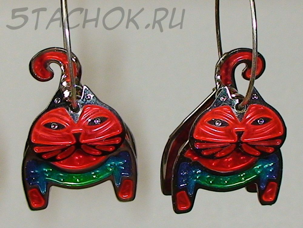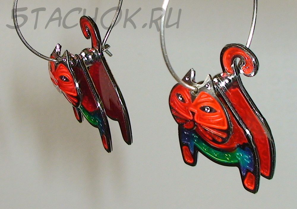 Разноцветная ювелирная эмаль. Три слоя сережки разделены биссером под серебро.
