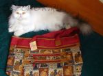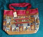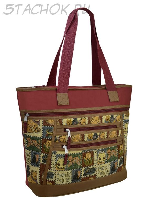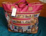 Сумка сшита из плащевки с использованием трикотажной ткани под гобелен, отделка искусственная кожа. Внутри одно большое отделение на замке сверху (помещает 3 комплекта постельного белья!), сбоку на замках большой карман, средний и малый.