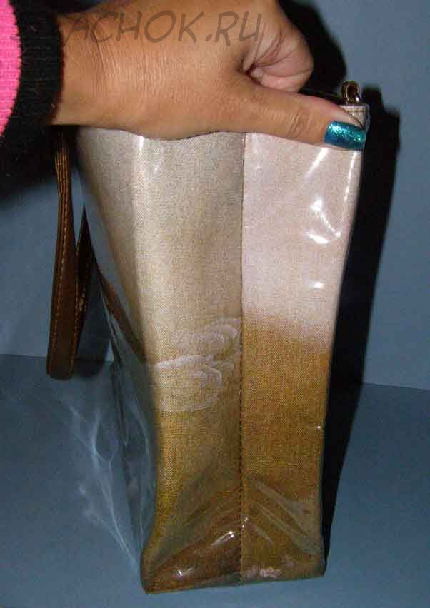 Сумочка выполнена из плотной ткани под гобелен, снаружи чехол из плотной виниловой пленки. Никакие дождики ей не страшны!