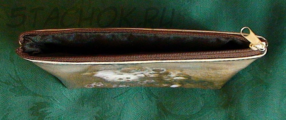 Косметичка также выполнена из плотной ткани под гобелен, снаружи чехол из плотной виниловой пленки.