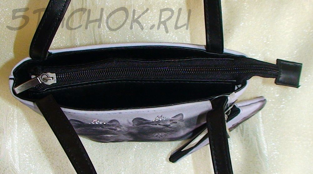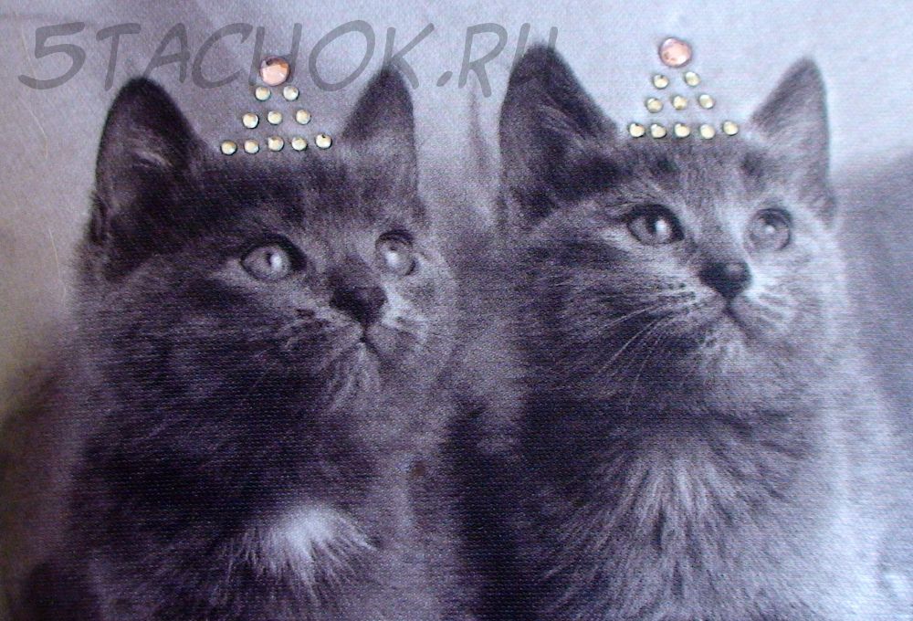 рисунок котят с обоих сторон и на сумочке, и на кошелечке.
