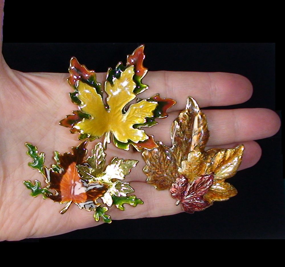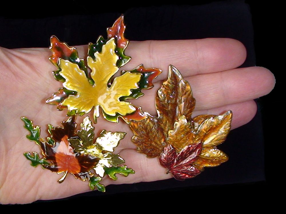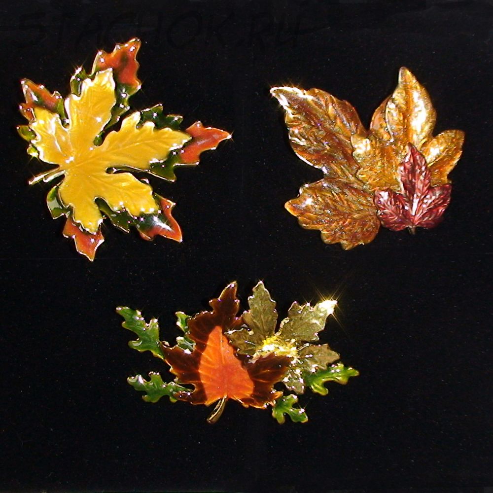 Три броши "Осенние листья" под золото/эмаль