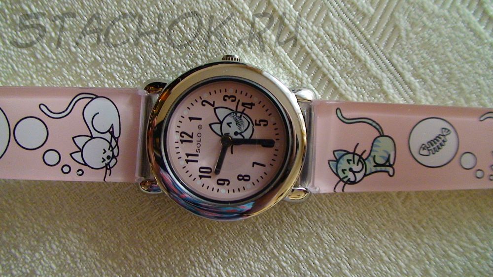 Часы для девочки "Котики и рыбка" (на ремешке)