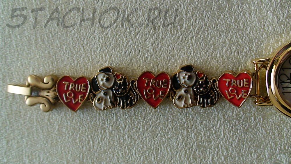 Кварцевые часики с веселыми кошечками и собачками на браслете подойдут молодым девушкам!