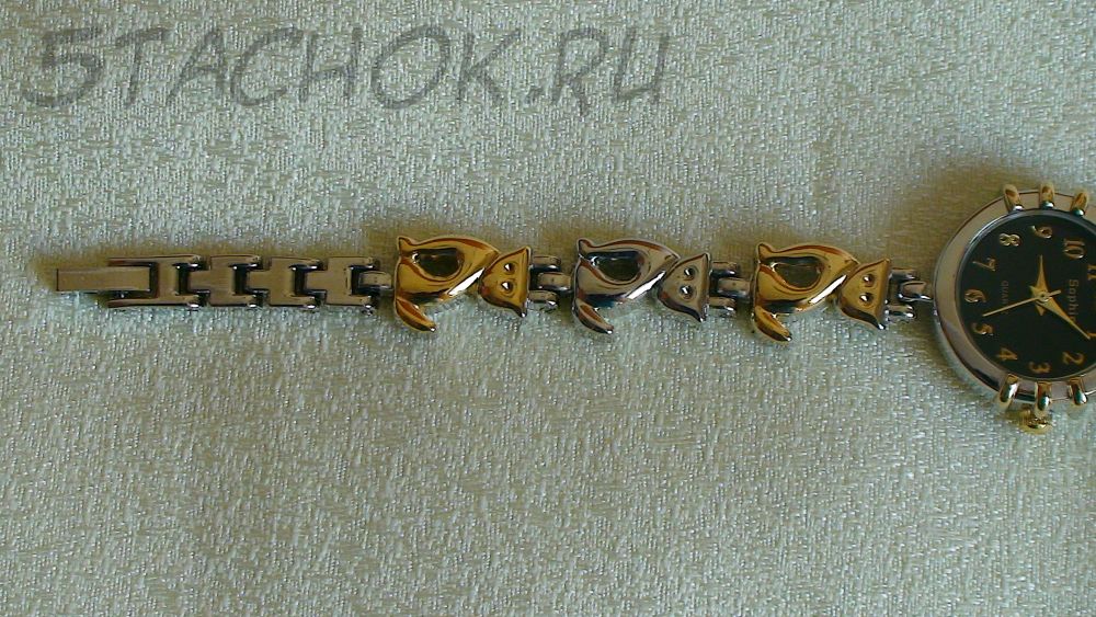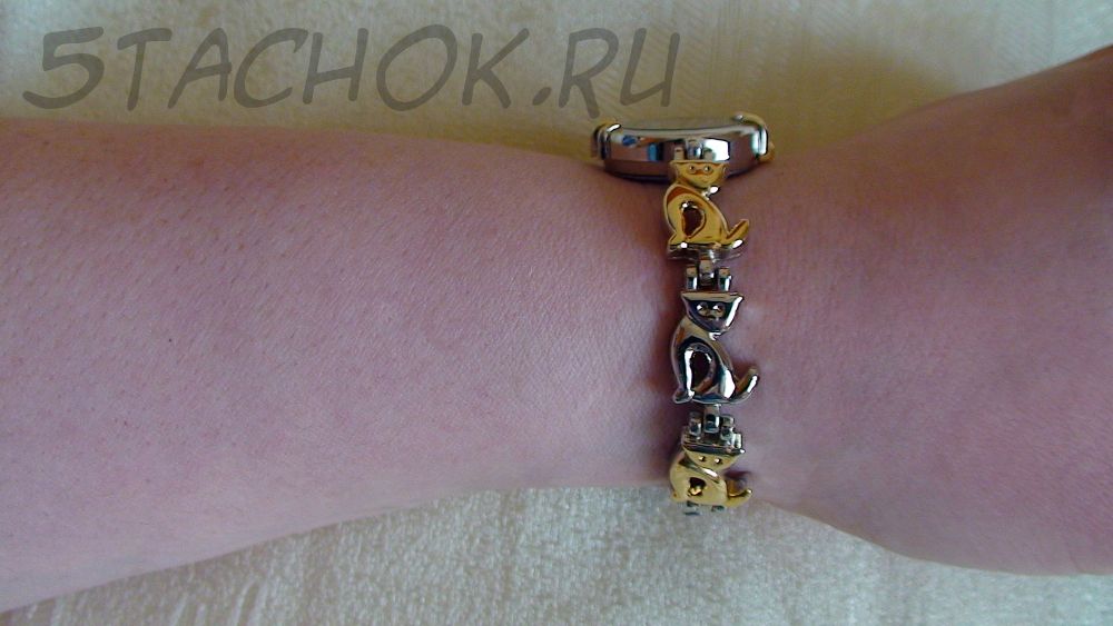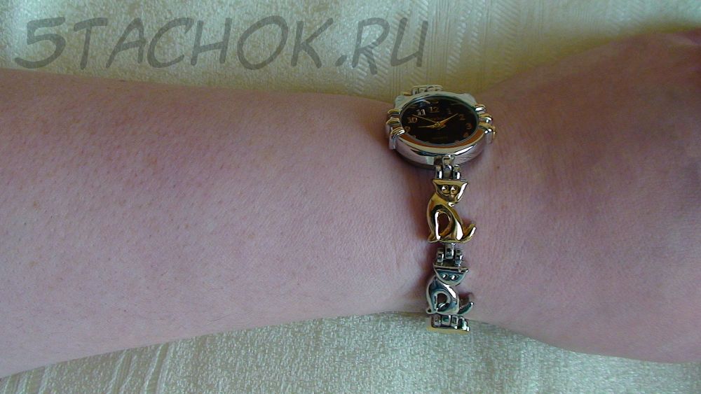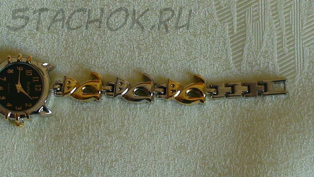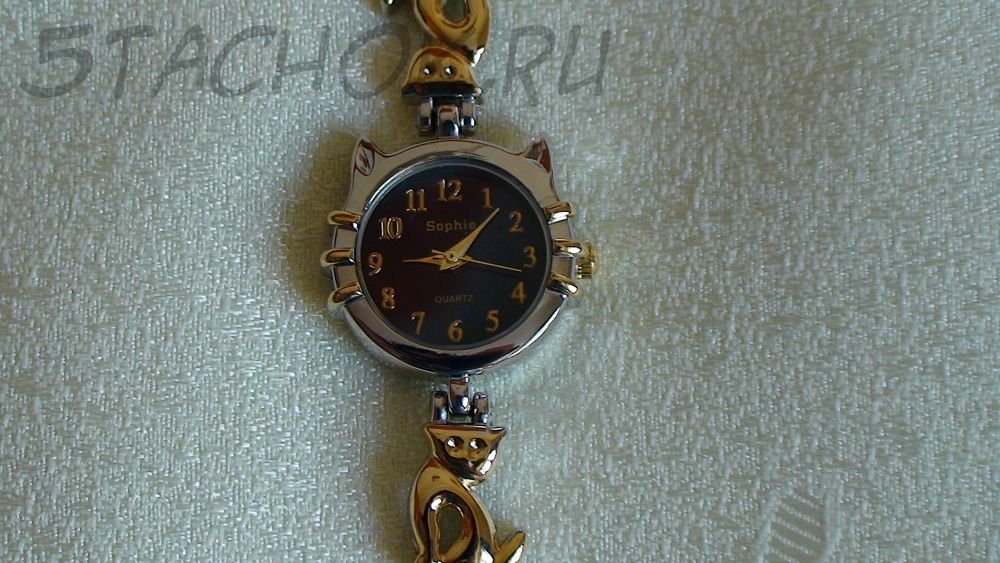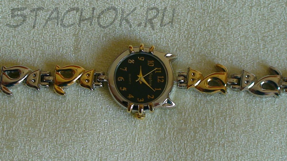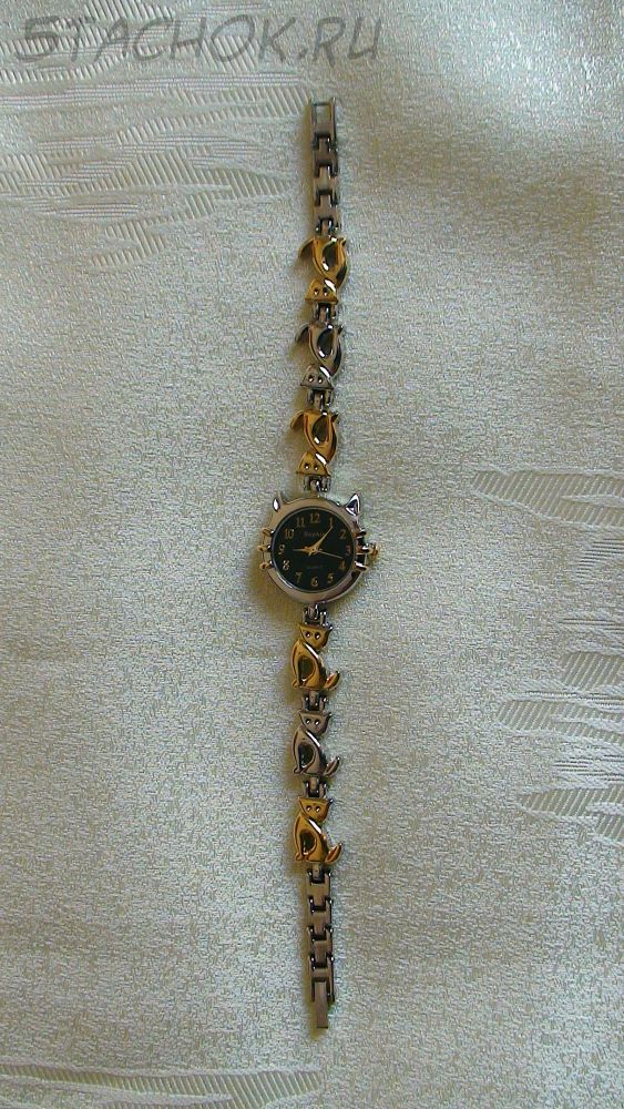 Часы женские "Кошка" золото+серебро черные (на браслете)
