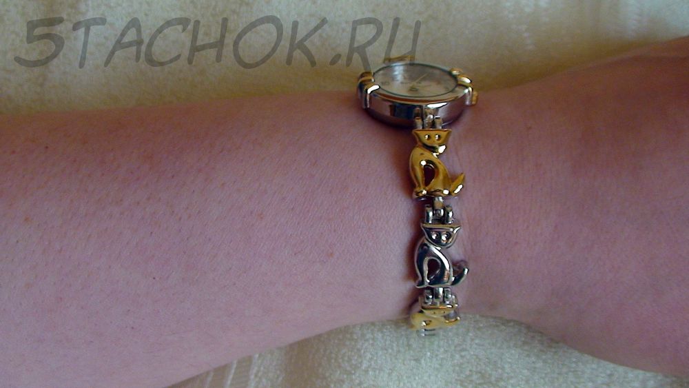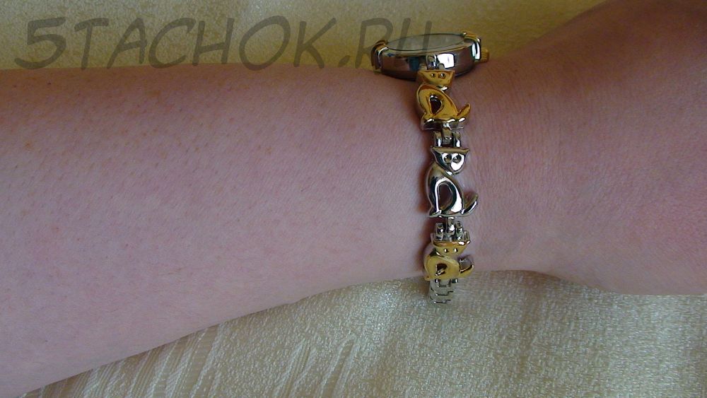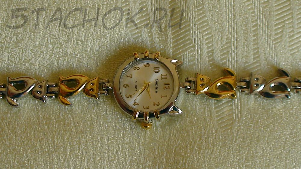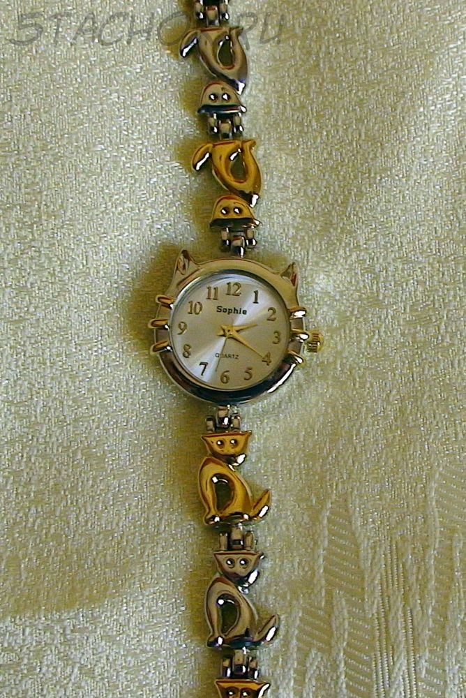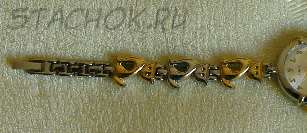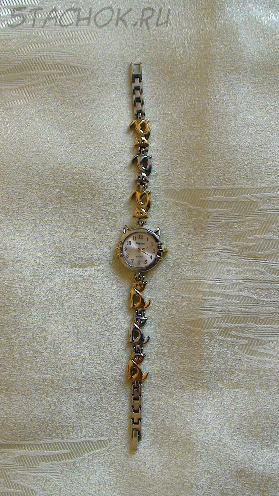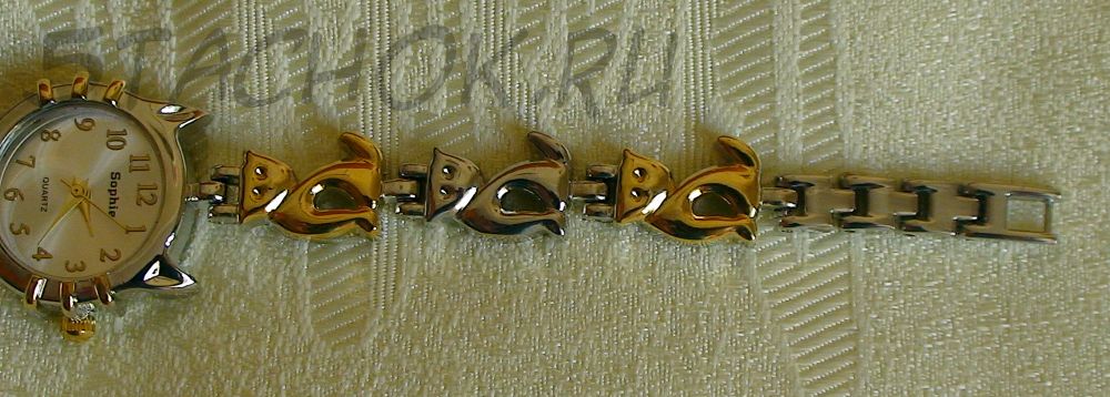Часы женские "Кошка" золото+серебро светлые (на браслете)