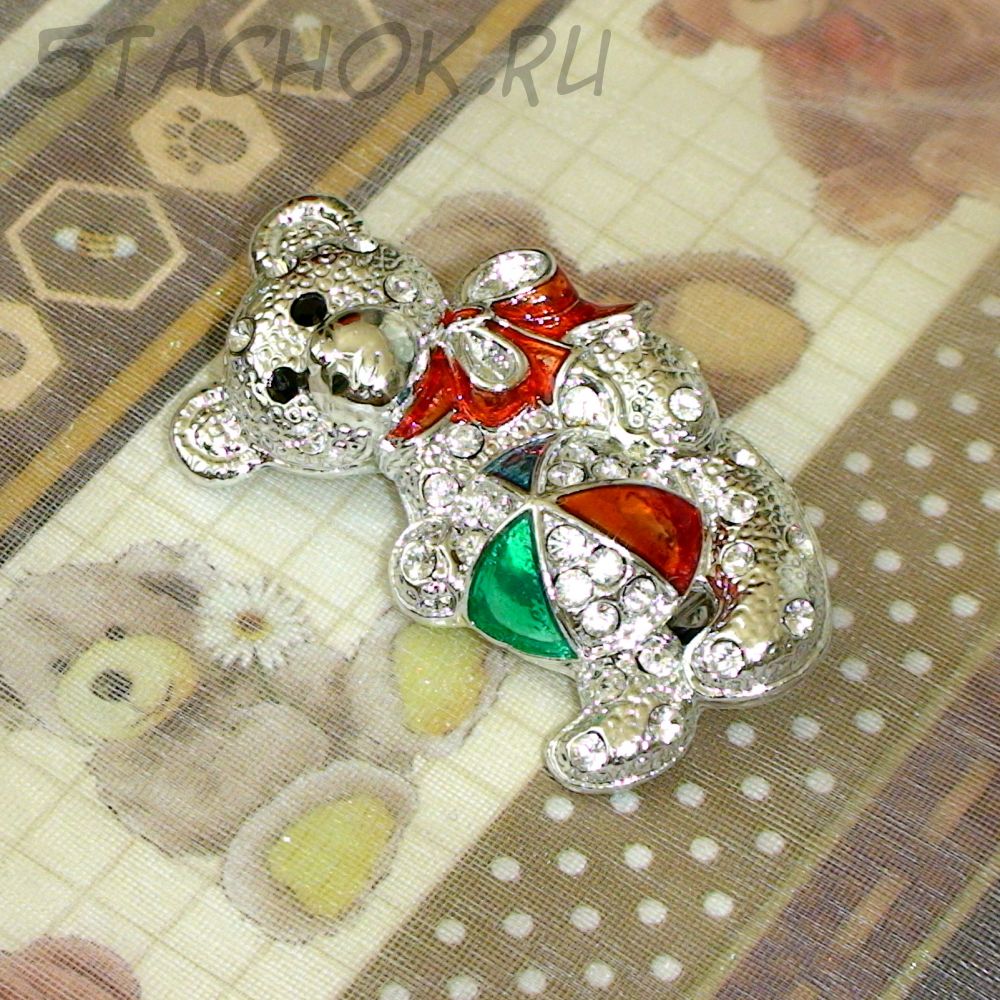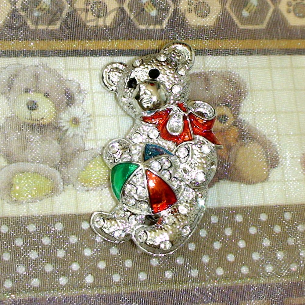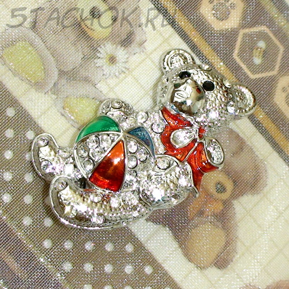 -20%Брошь"Игрушечный мишутка"под серебро/эмаль/стразы