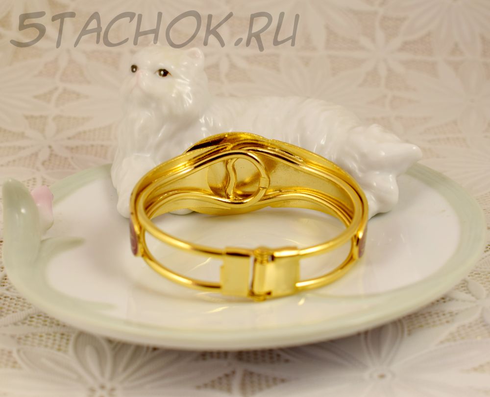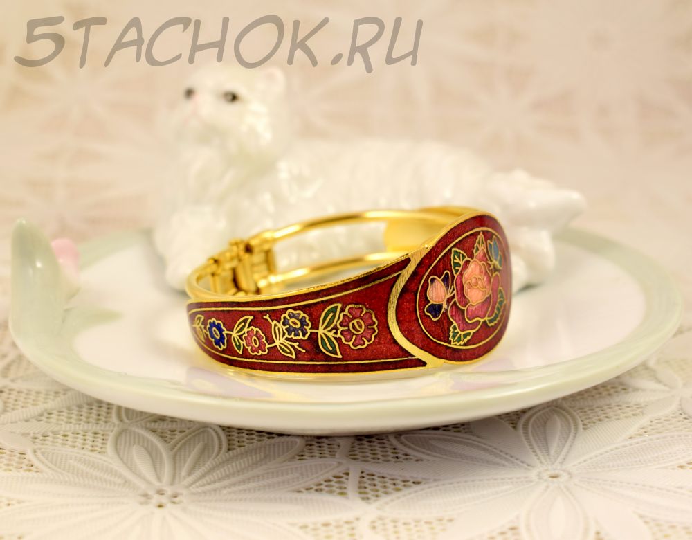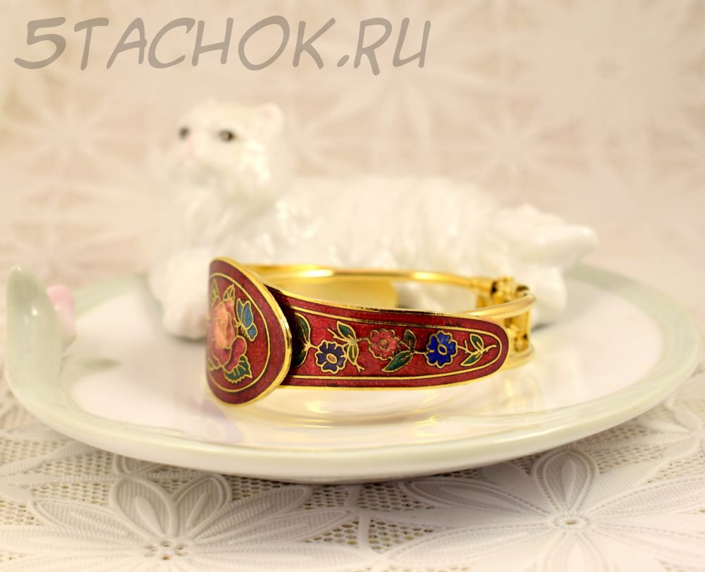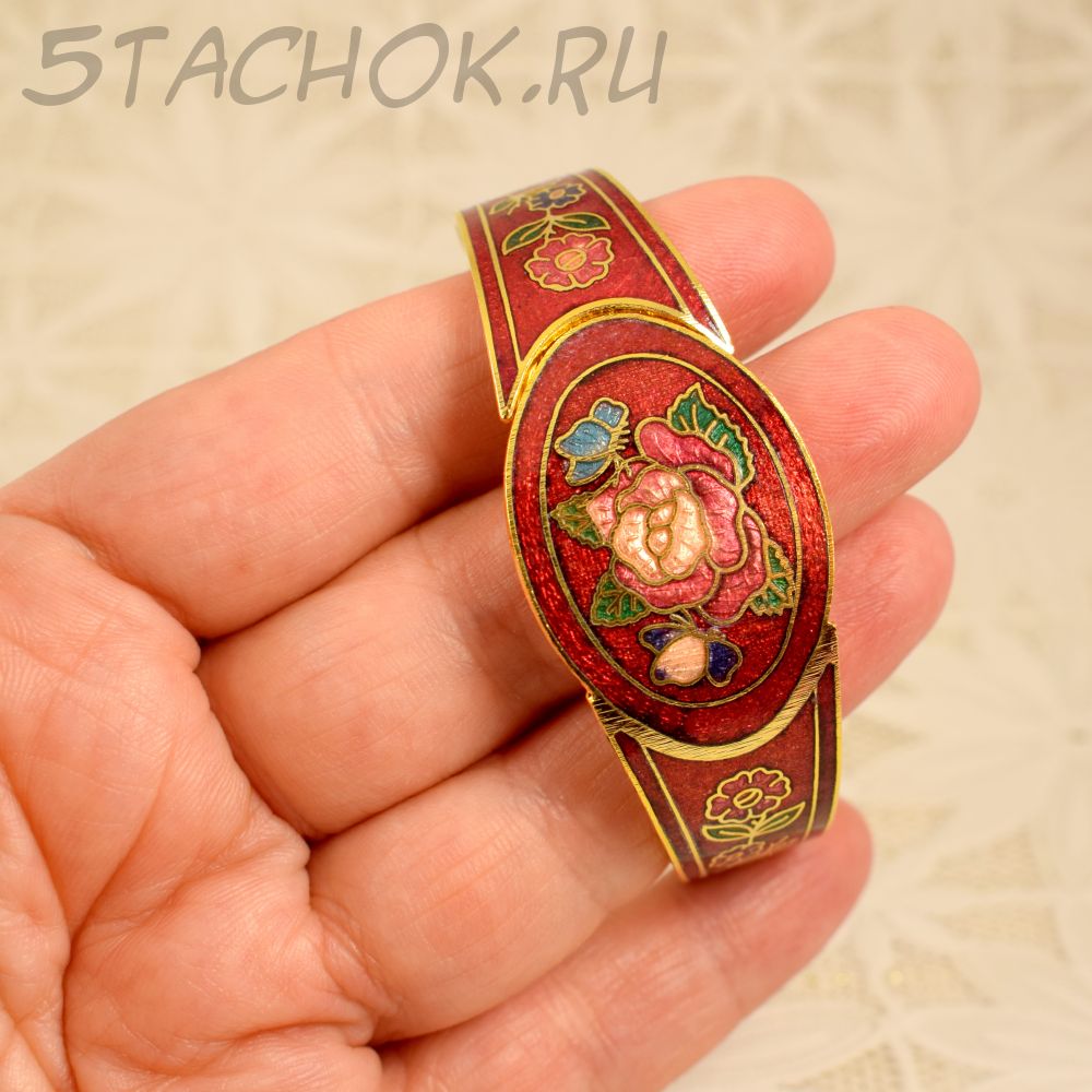 Браслет "Цветы и бабочки на красном" клуазоне (Тайвань/Китай)