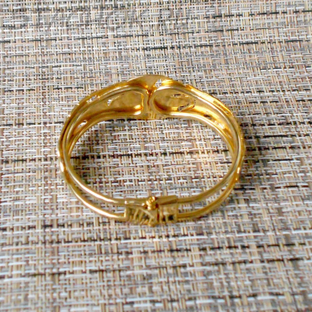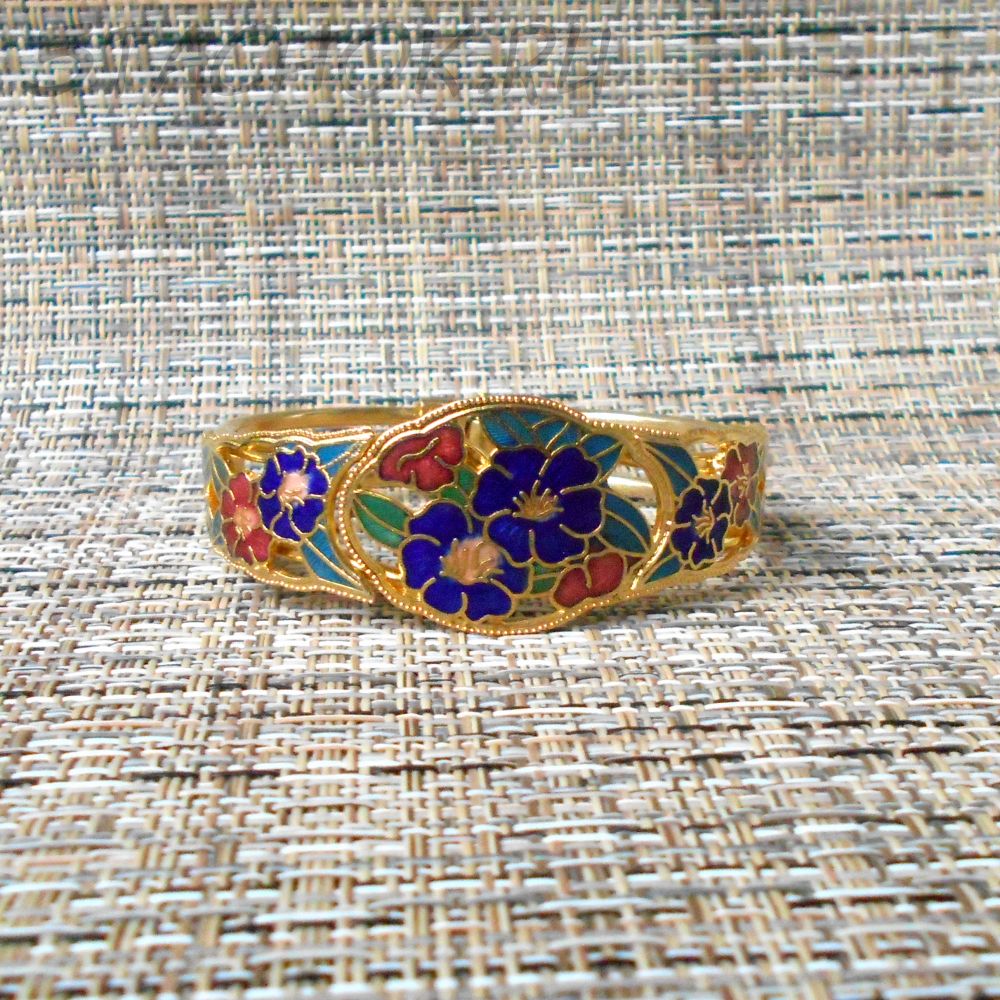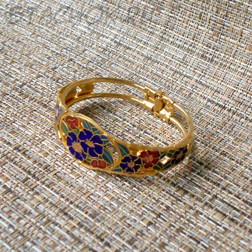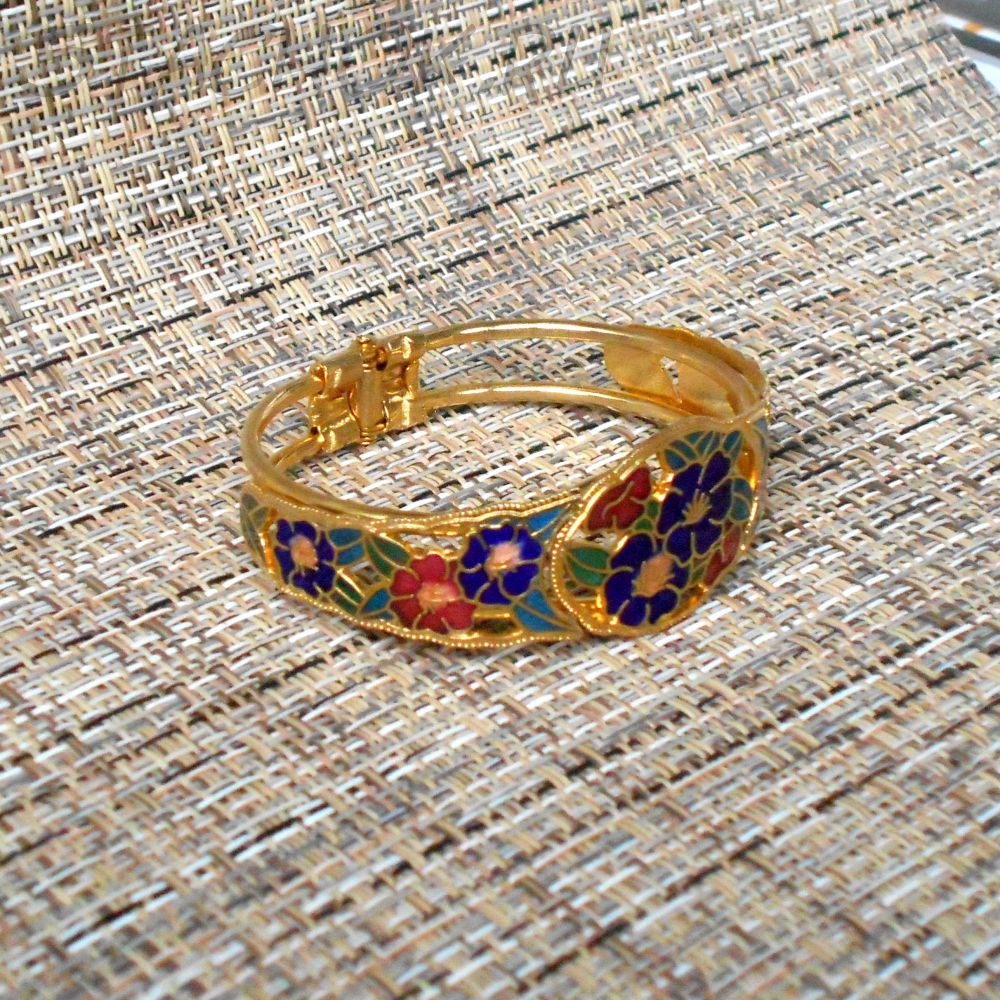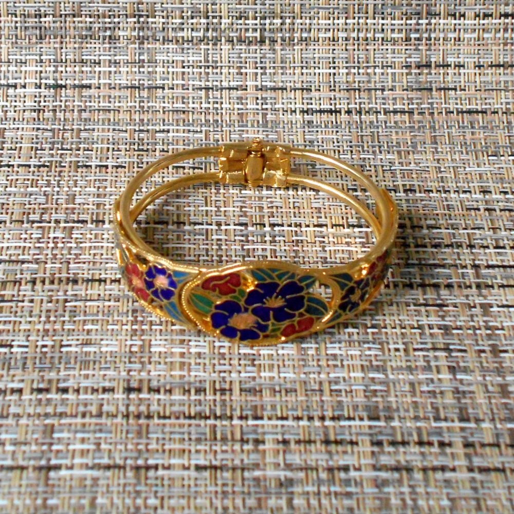 Яркий, необычайной красоты редкий браслет, выполнен под золото. Яркая разноцветная перламутровая эмаль и позолота не дает отвести взгляда от браслета! Изделие в безупречном состоянии, ранее не использовалось. Подходит на запястие толщиной до 19см. Винтаж 1980-х Немаркировано Производство (Тайвань-Китай).