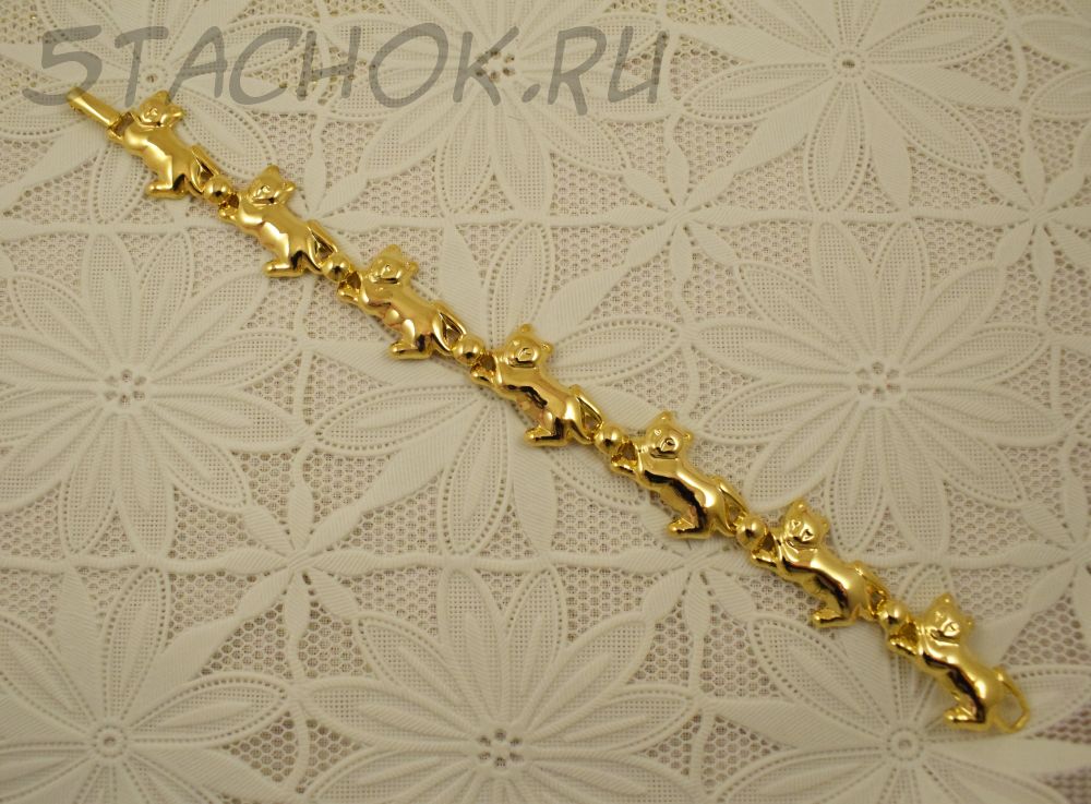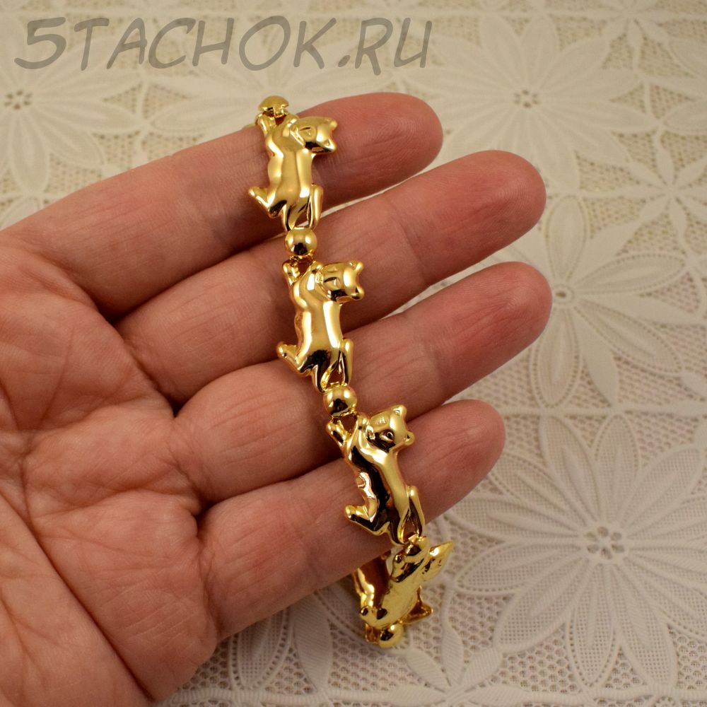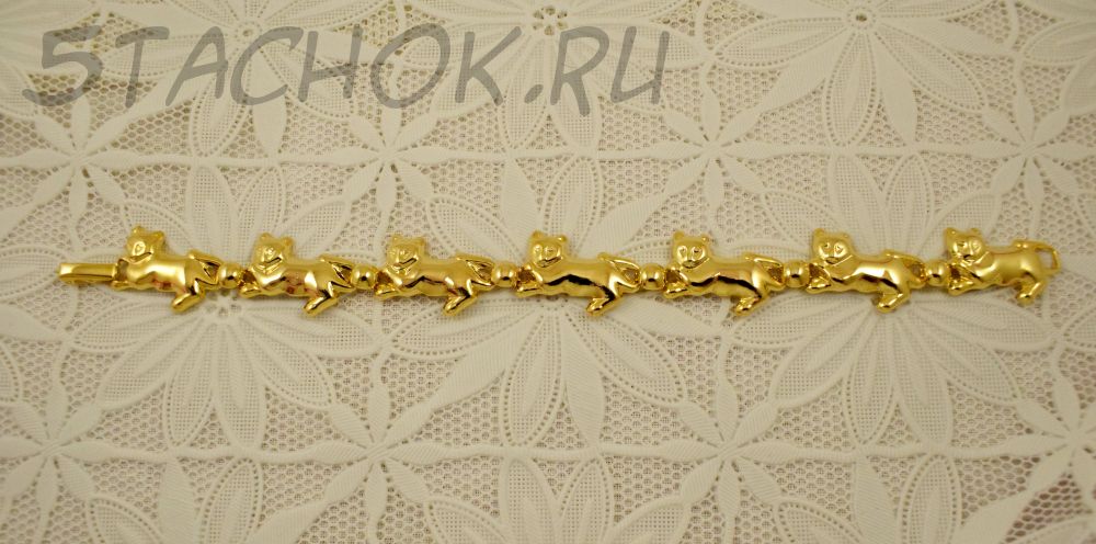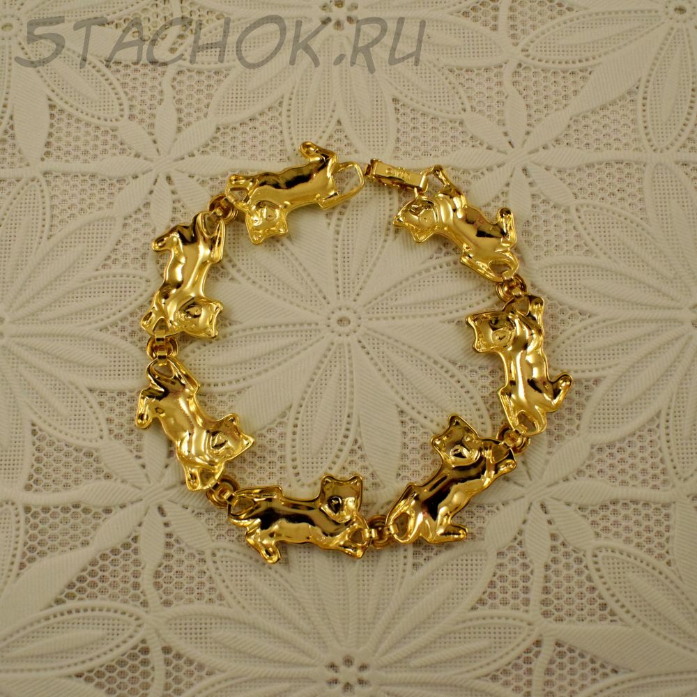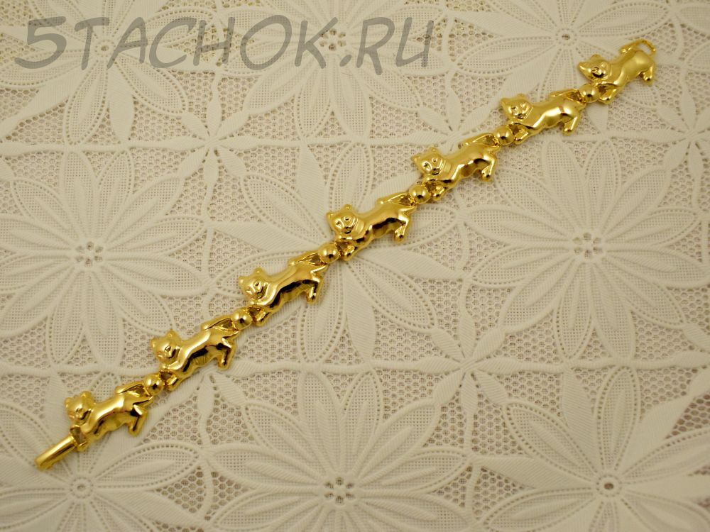 Оригинальный, чудесный и редкий браслет. Выполнен в цвете блестящего золота. Общая длина браслета 18см Размер одной секции с котиком 2,5*1,7см Винтаж Браслет в безупречном состоянии, изделие ранее не использовалось Производство Avon (США) Маркирован