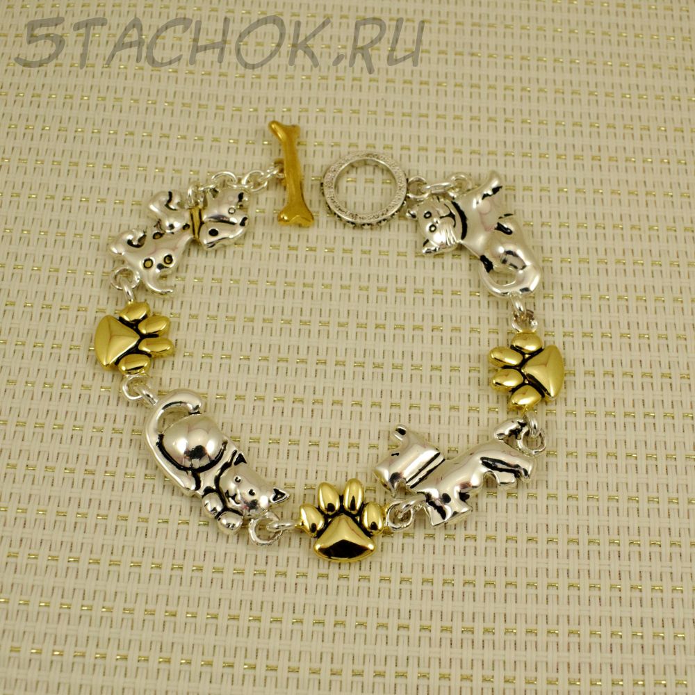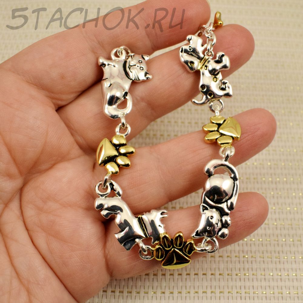 На браслете изображены 2 котика и 2 песика (все разные). Все элементы браслета объемные двусторонние.