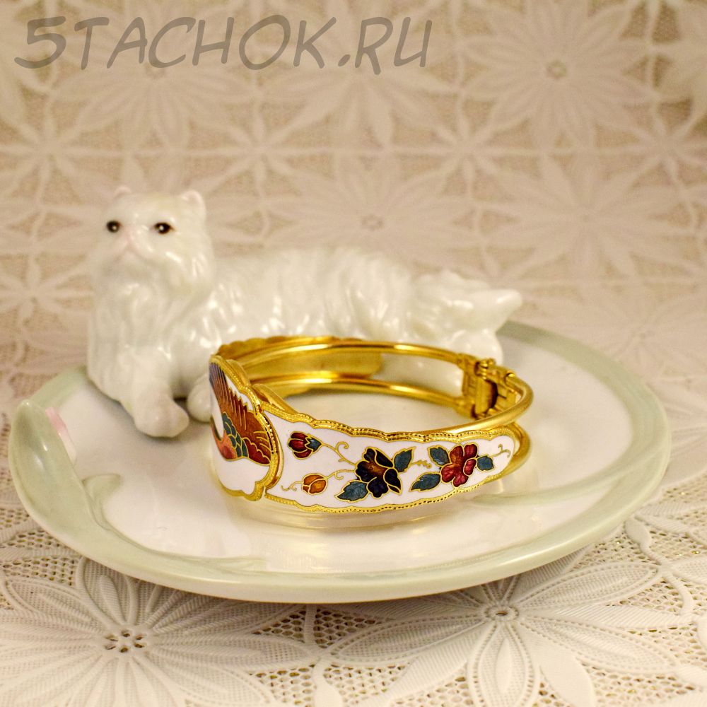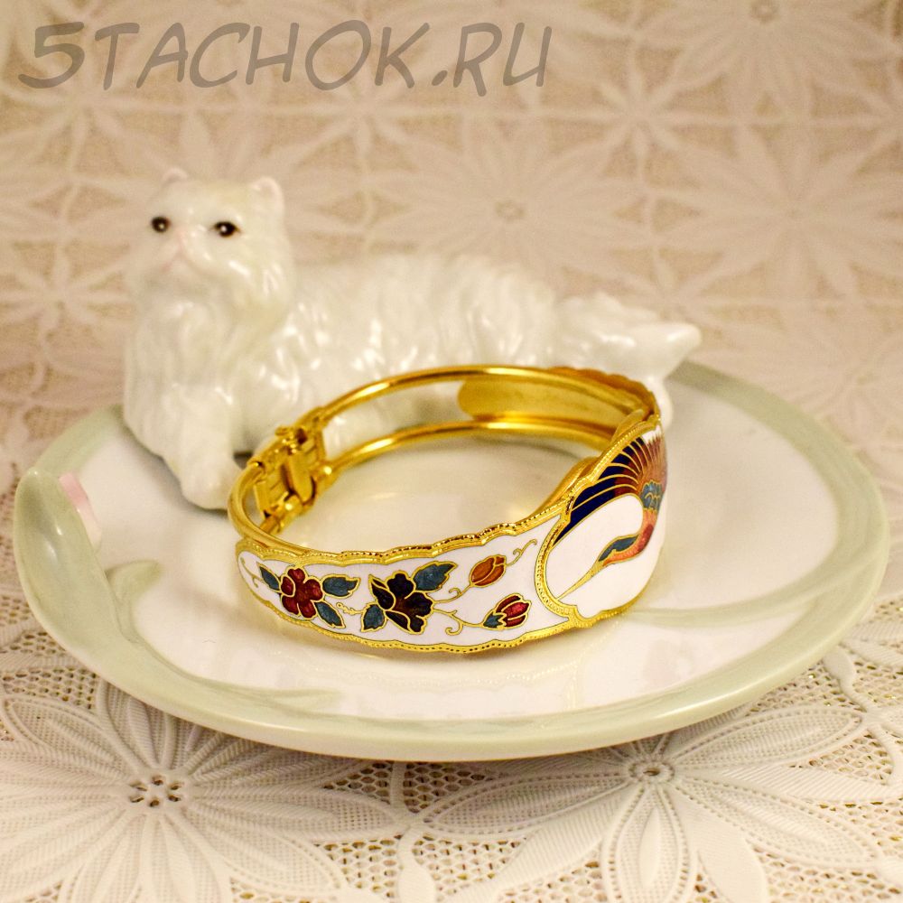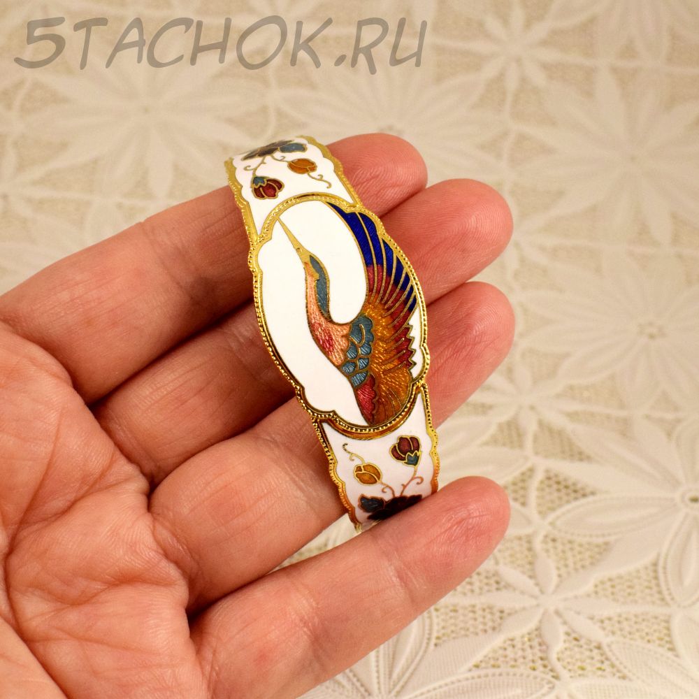 Браслет "Журавль на белом" клуазоне (Тайвань/Китай)