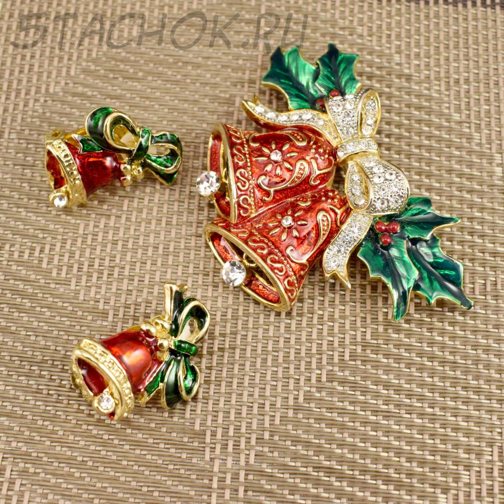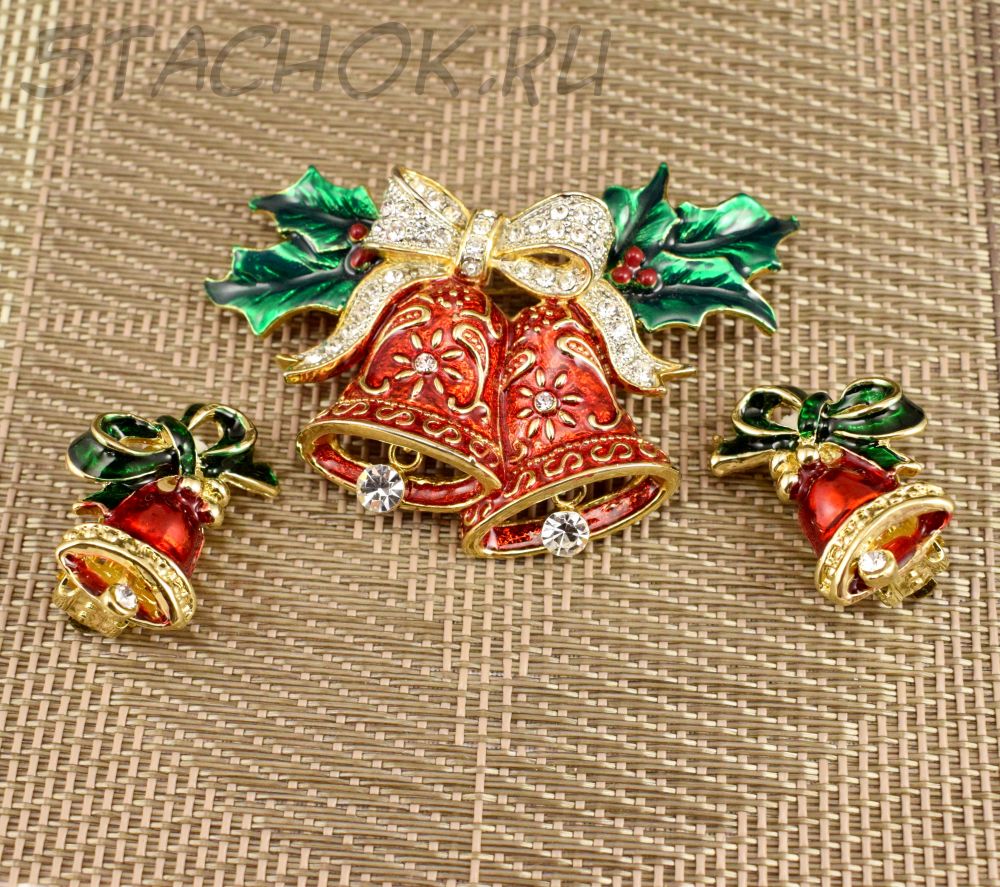 Брошь и клипсы "Новогодние колокольчики" (США)