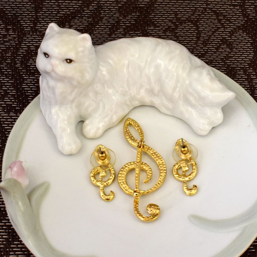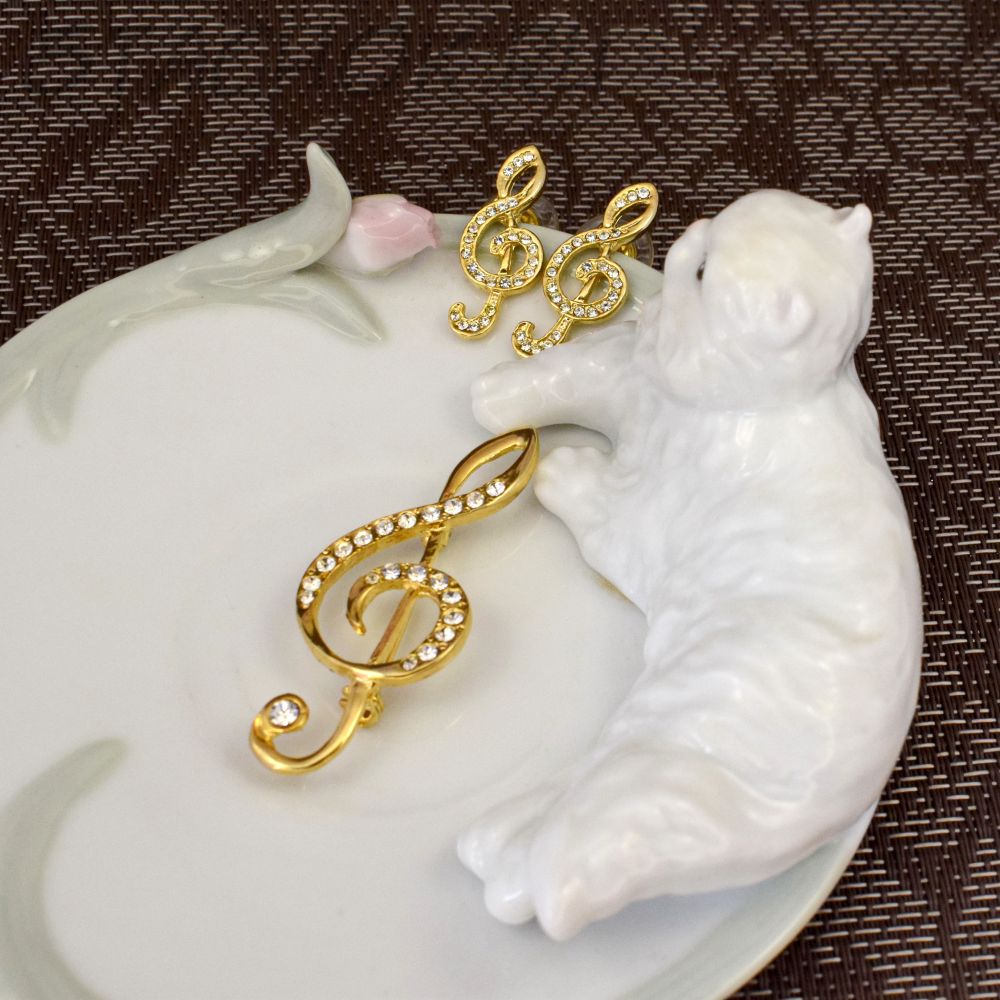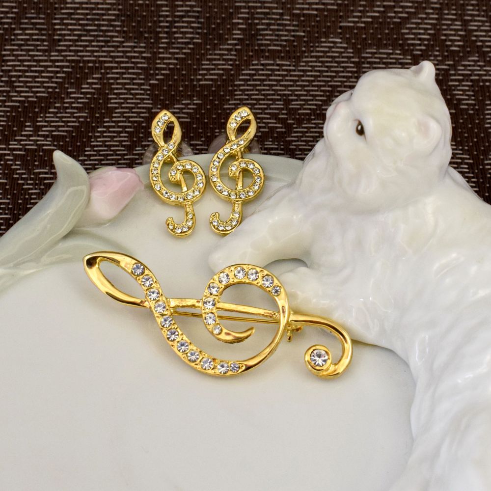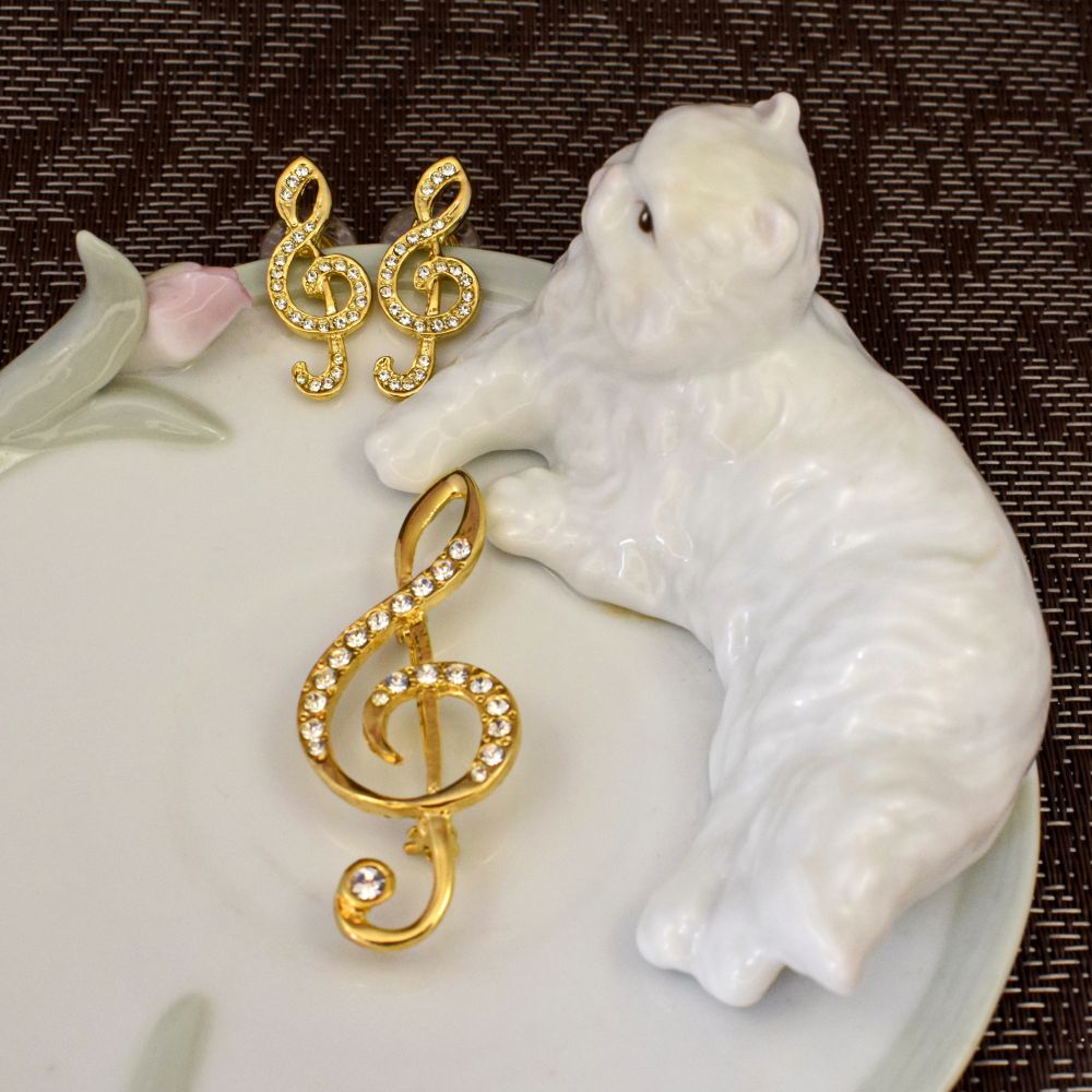 Брошь и серьги-гвоздики "Скрипичный ключ" (США)