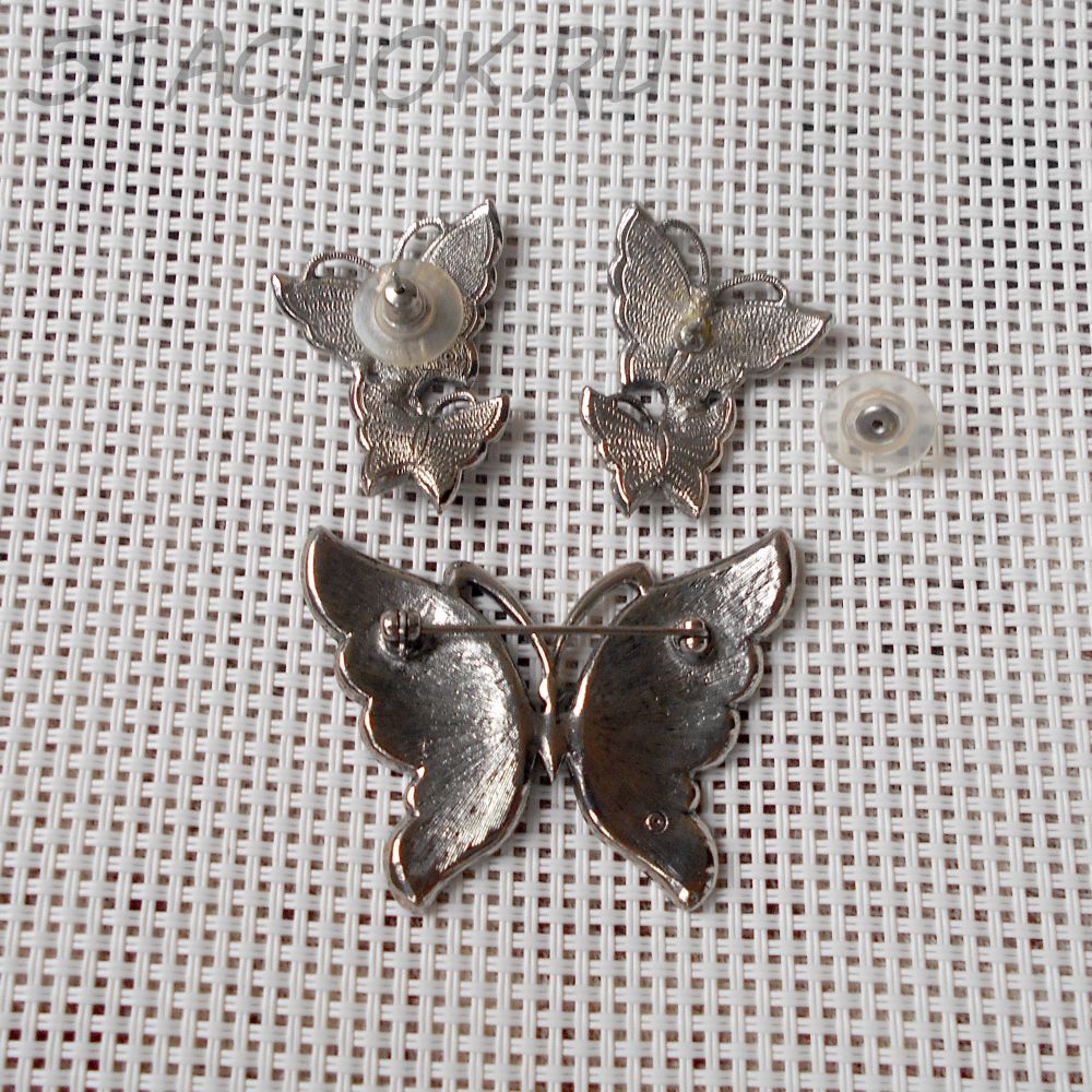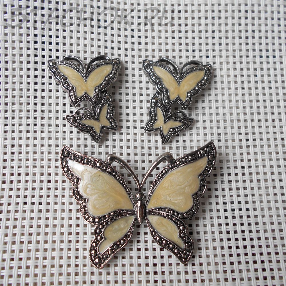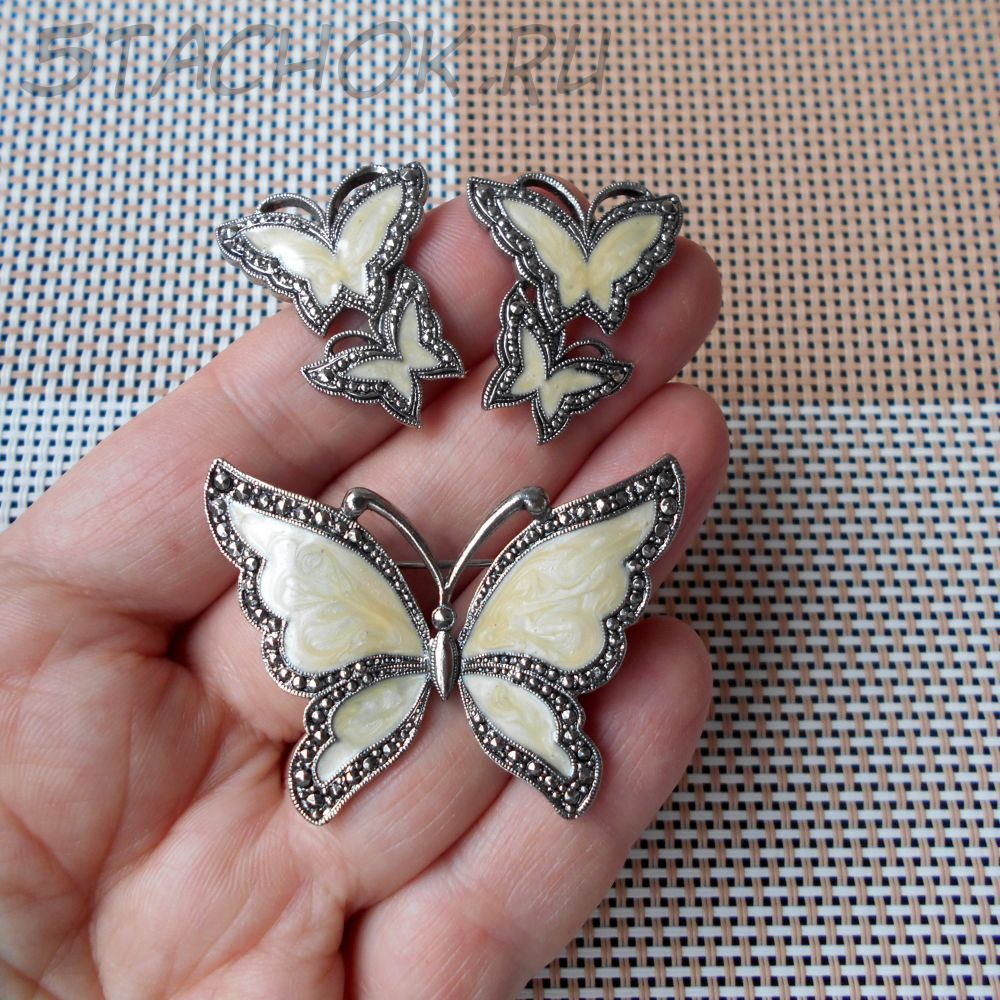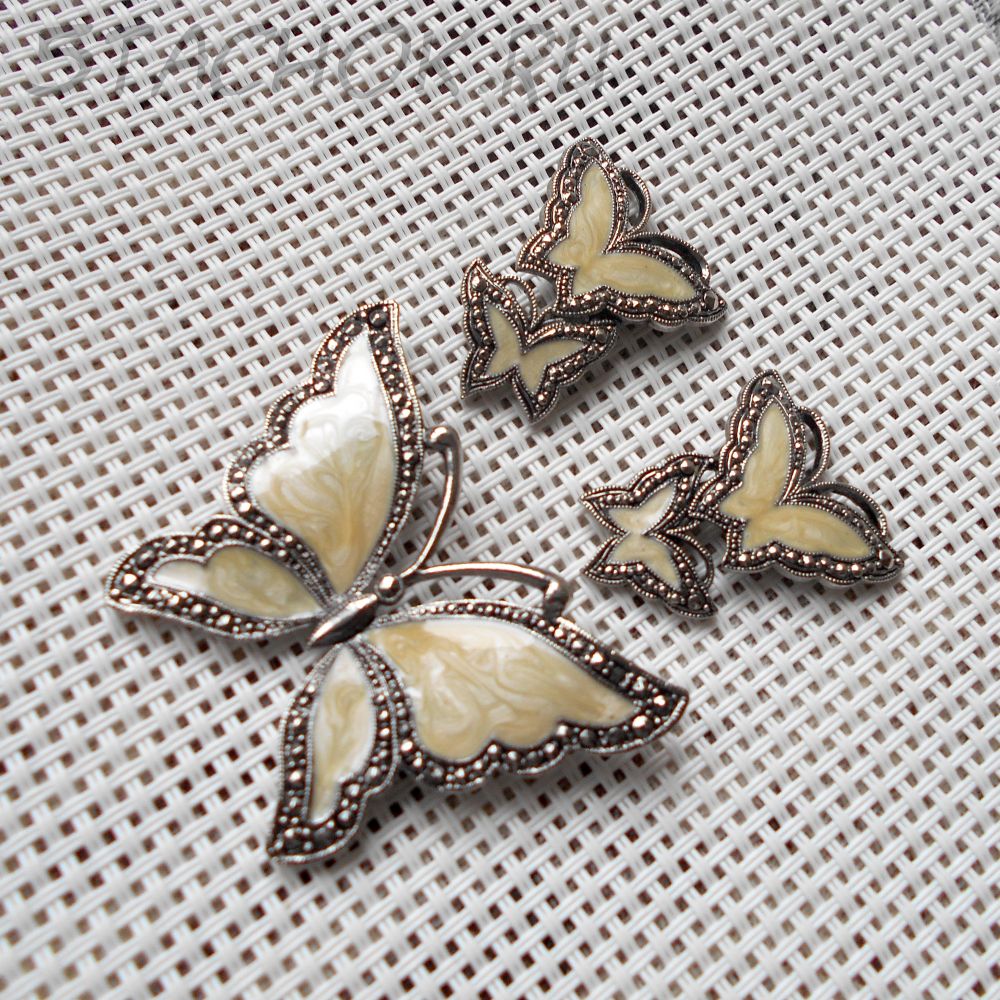 Брошь и серьги "Бабочки" под серебро с марказитами