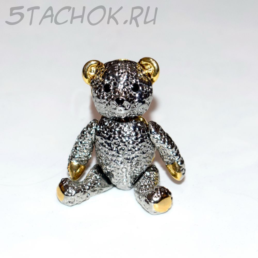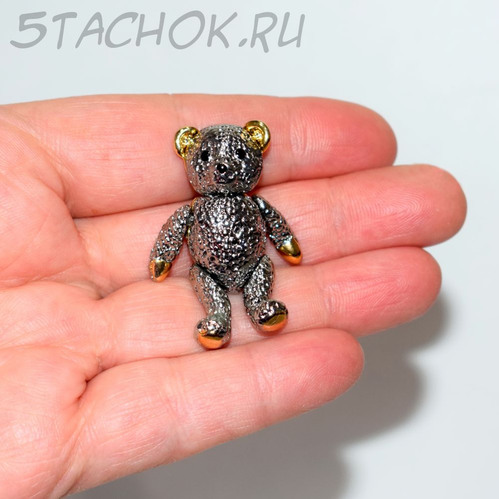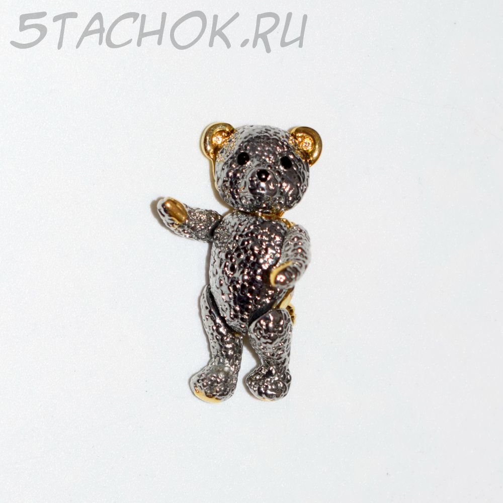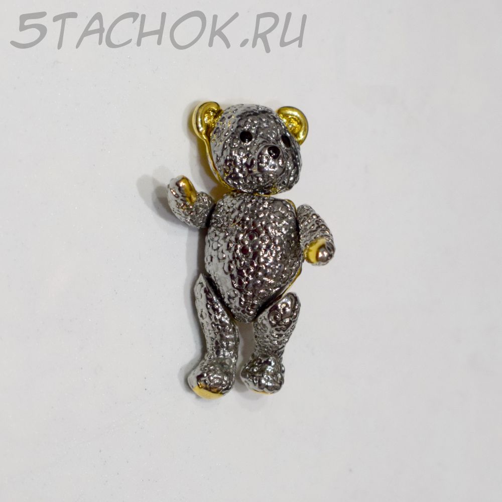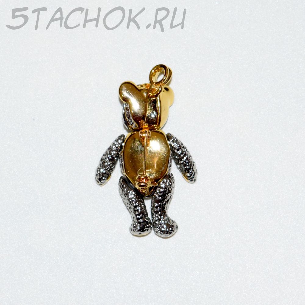 У мишутки подвижные ножки, ручки и голова. Выдвигается петелька, позволяющая носить брошку как подвеску.