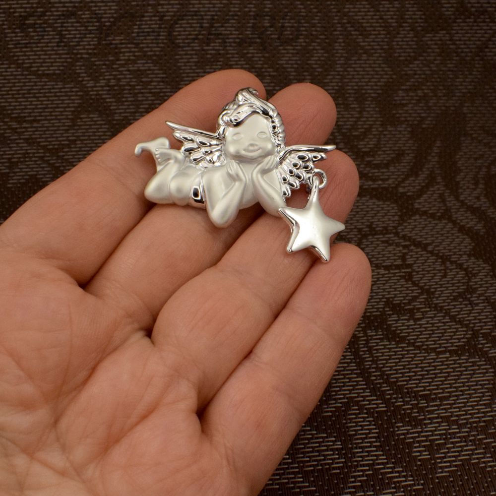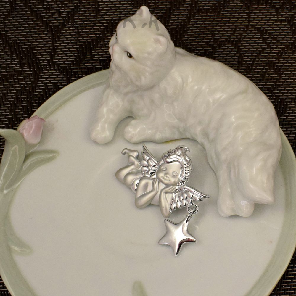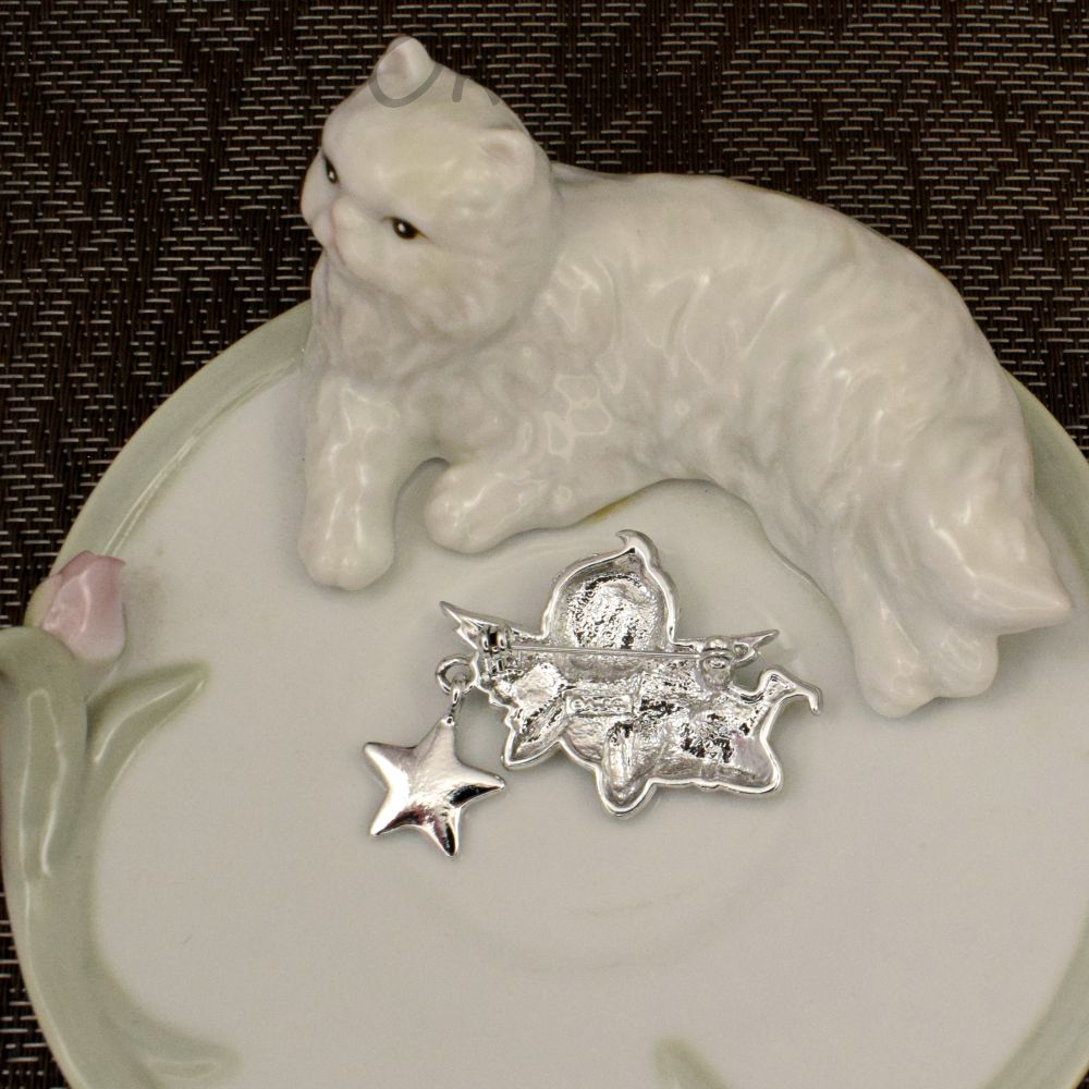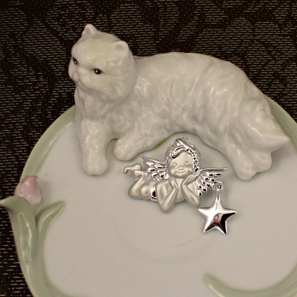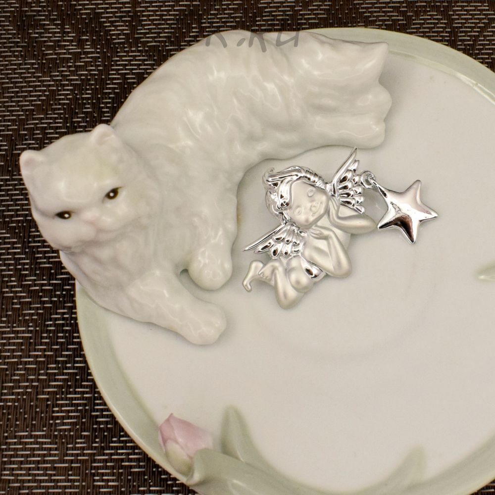 Брошь "Ангелочек со звездочкой" цвет серебра (AJC США)
