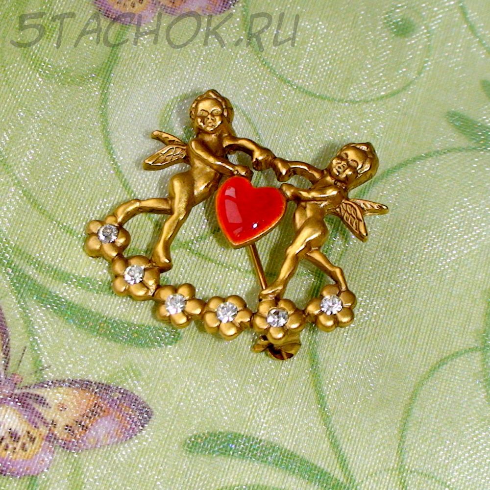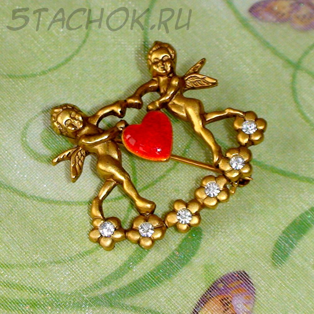 Брошь "Ангелы любви" под античное золото/эмаль/стразы