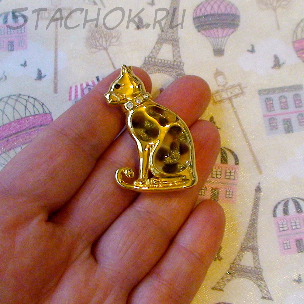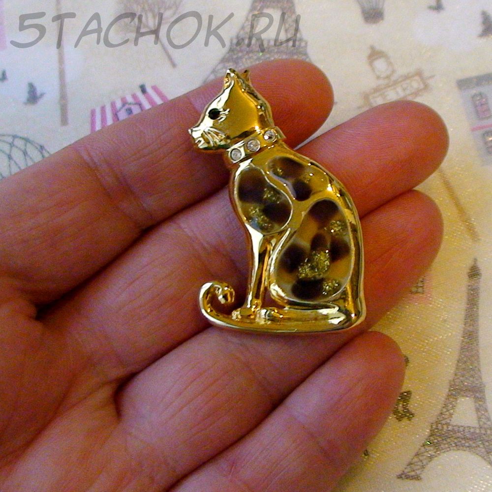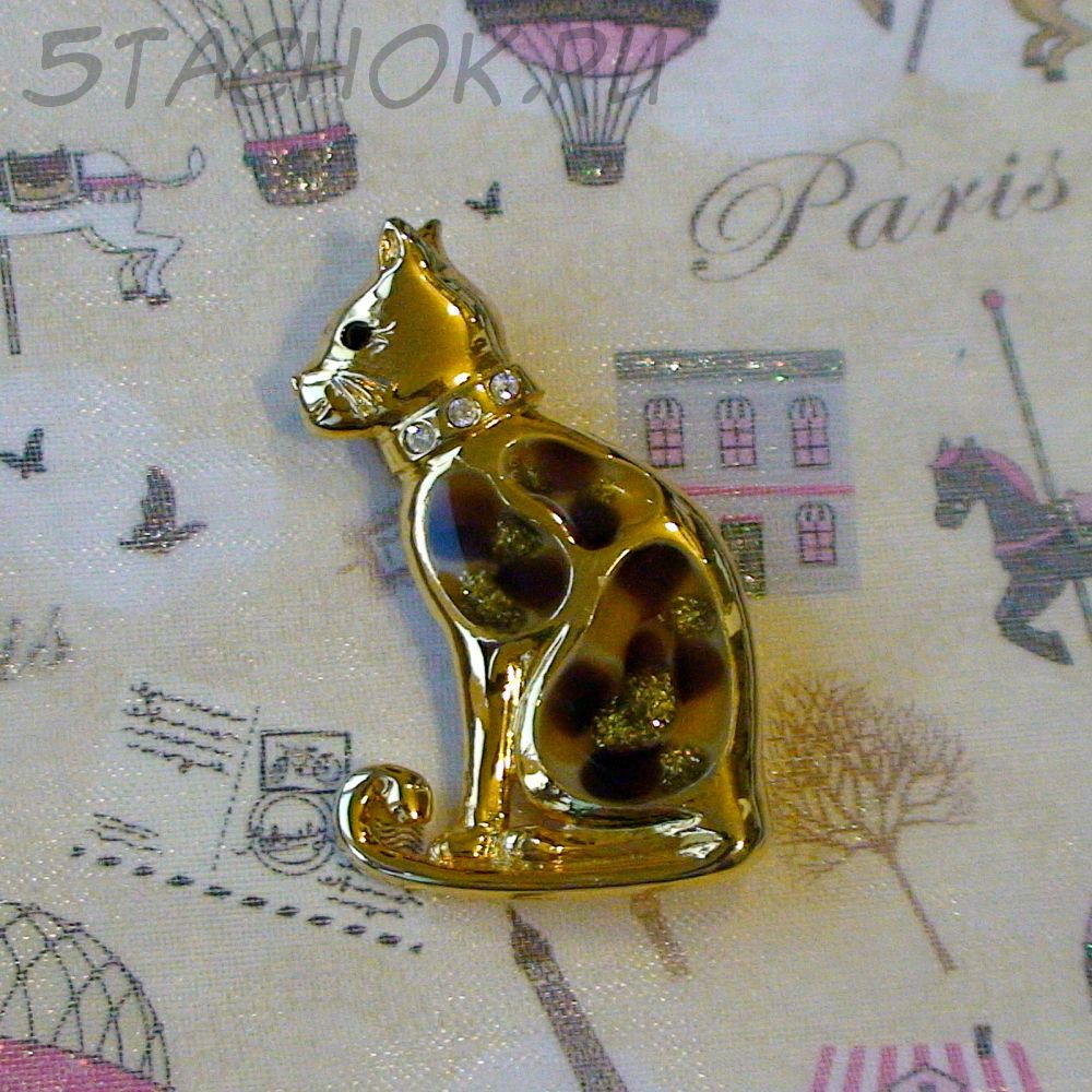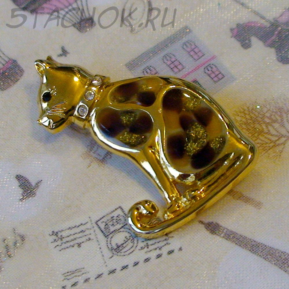 Брошь "Бенгальская кошка" под золото, эмал, стразы