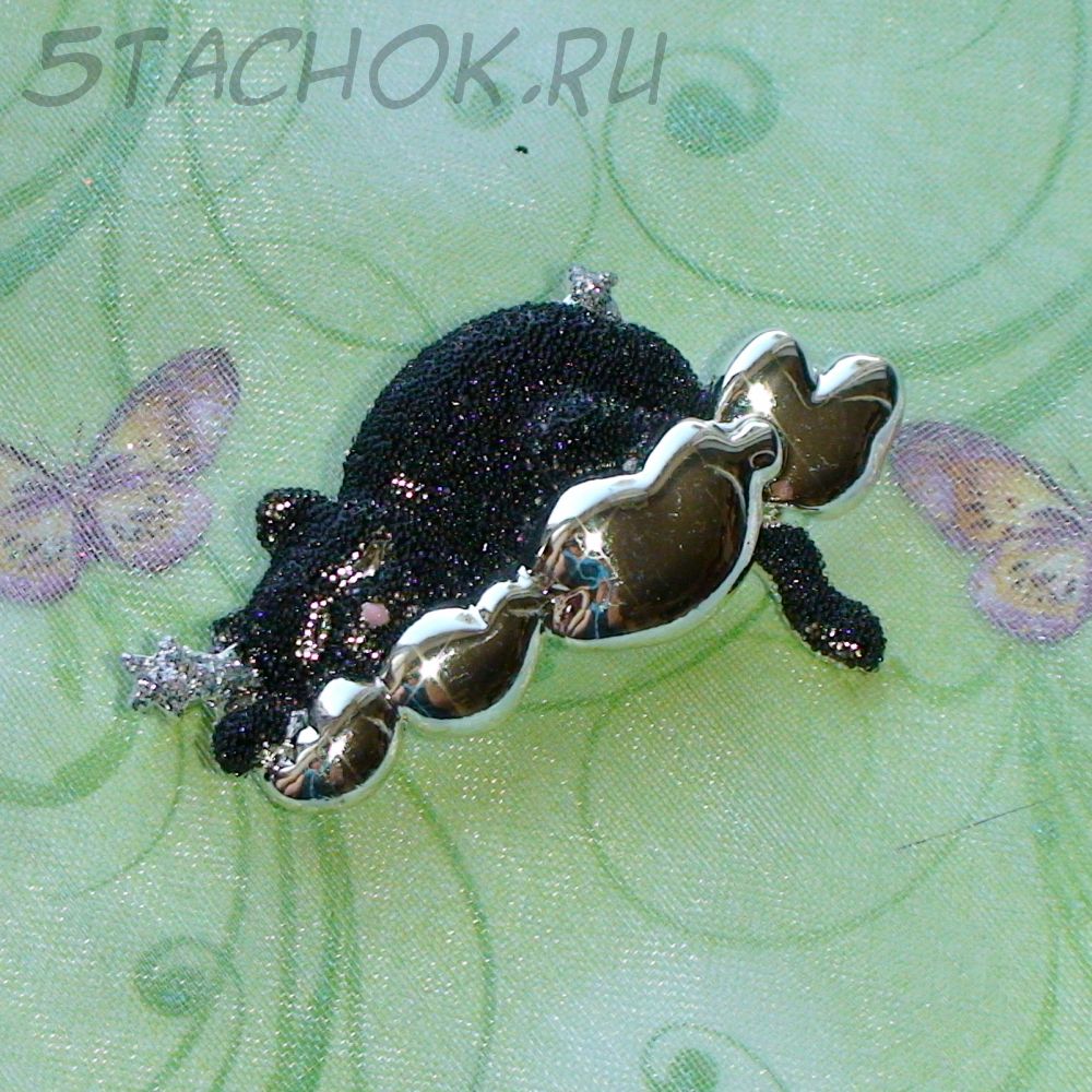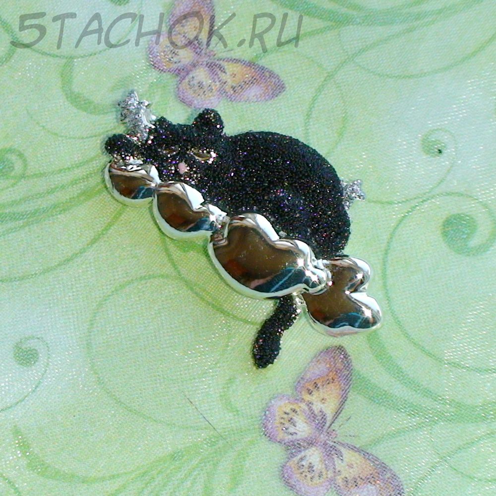 Выполнена под блестящее серебро. Котик из ювелирной крошки черного цвета. Мышка и звездочка - крошка серебристого цвета. у котика подвижный хвостик.