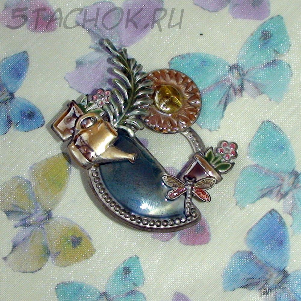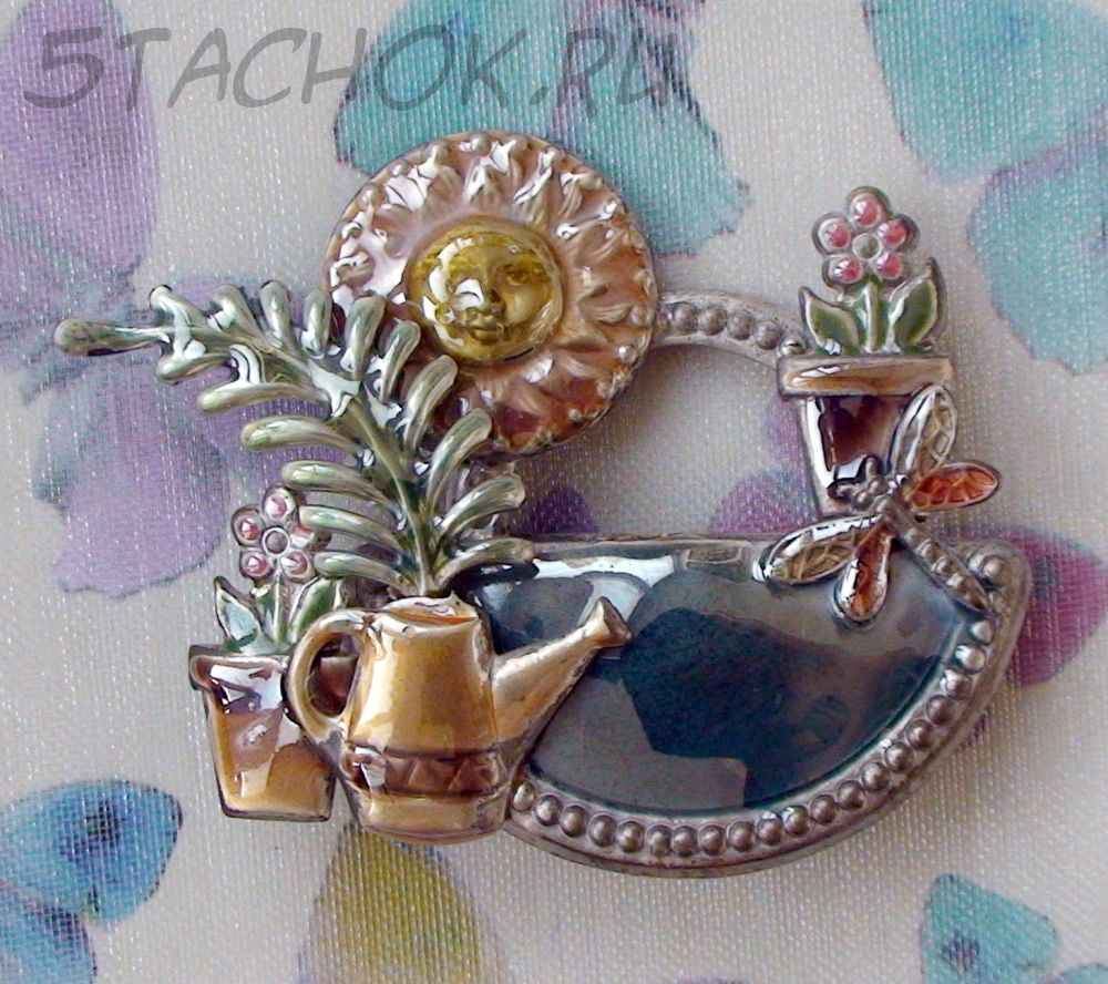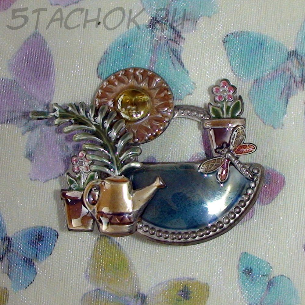 Брошь "Цветоводу" под серебряную чеканку, эмаль