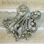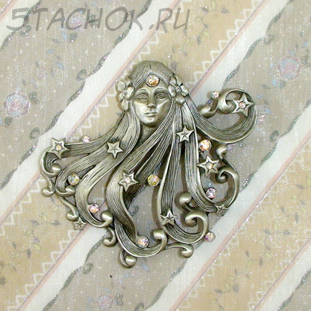 Брошь "Дама в стиле модерн" под олово, сваровски (JJ США)