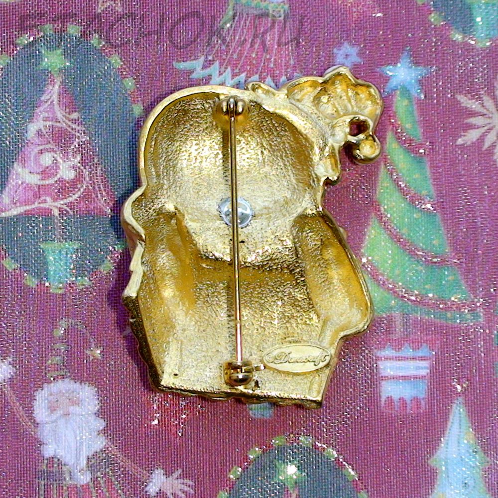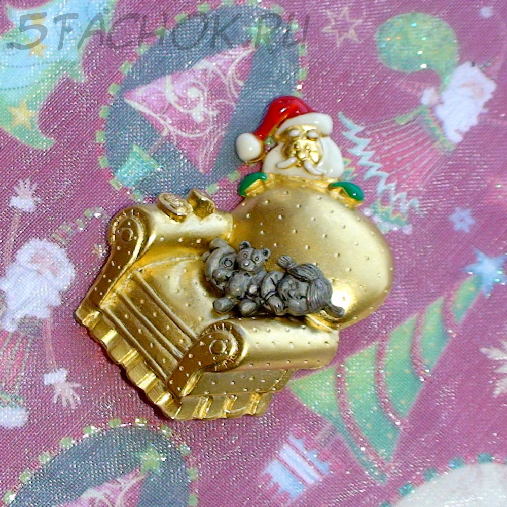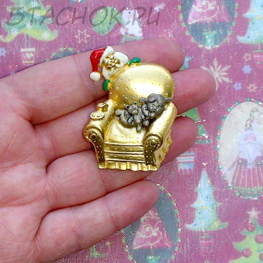 Брошь "Девочка и Санта" под золото/олово/эмаль