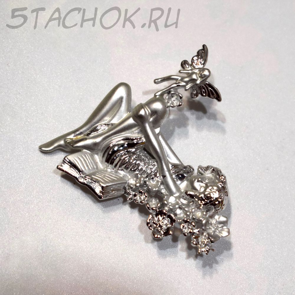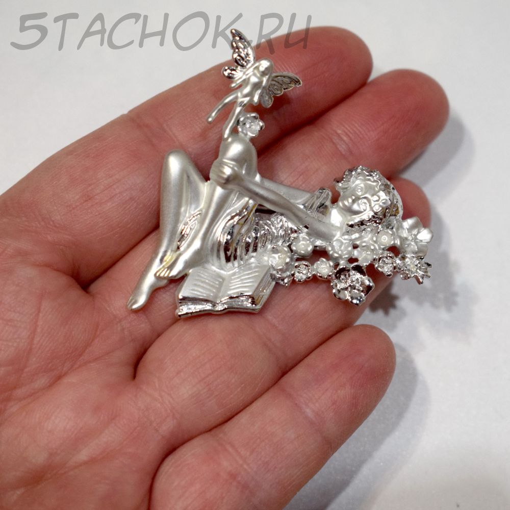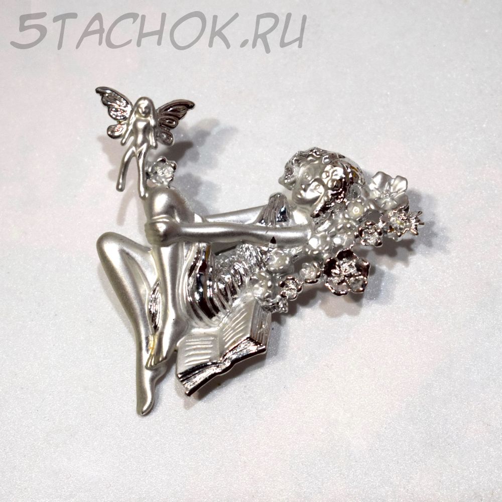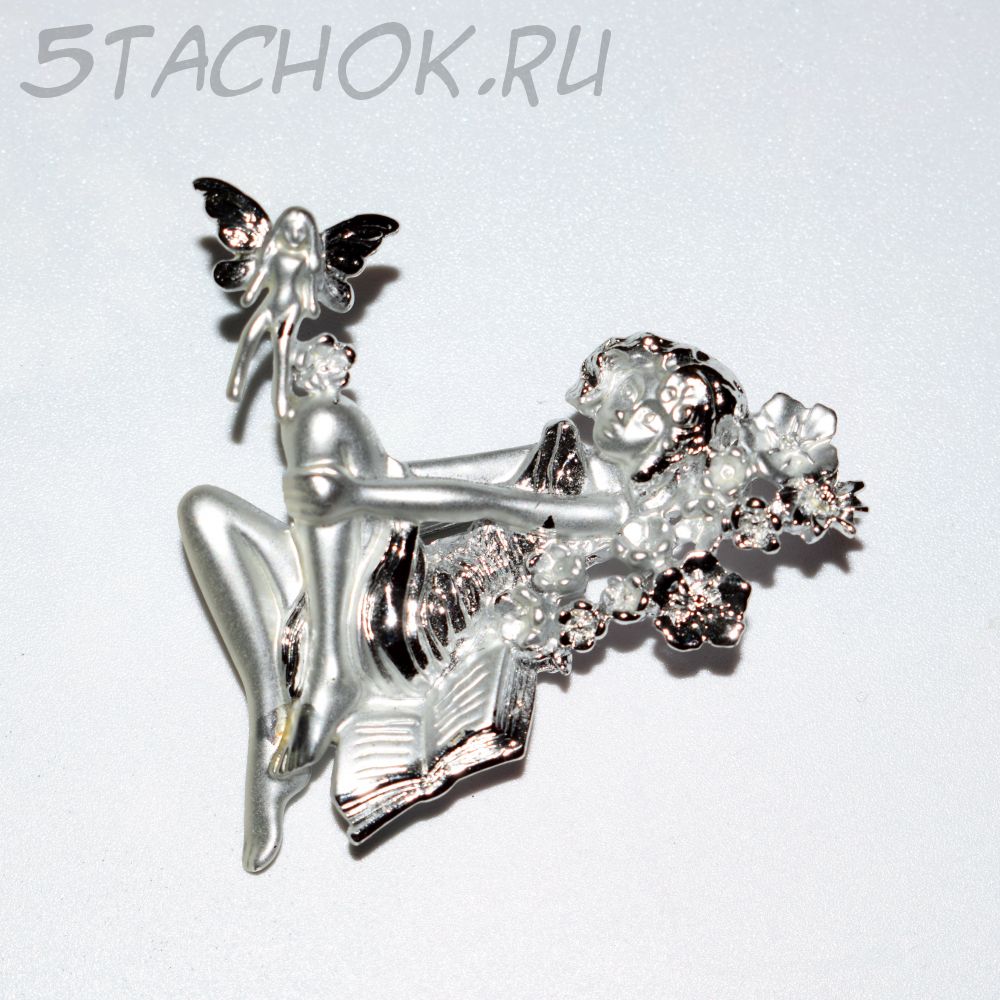 Брошь "Девушка и фея" цвет серебра (AJC США)