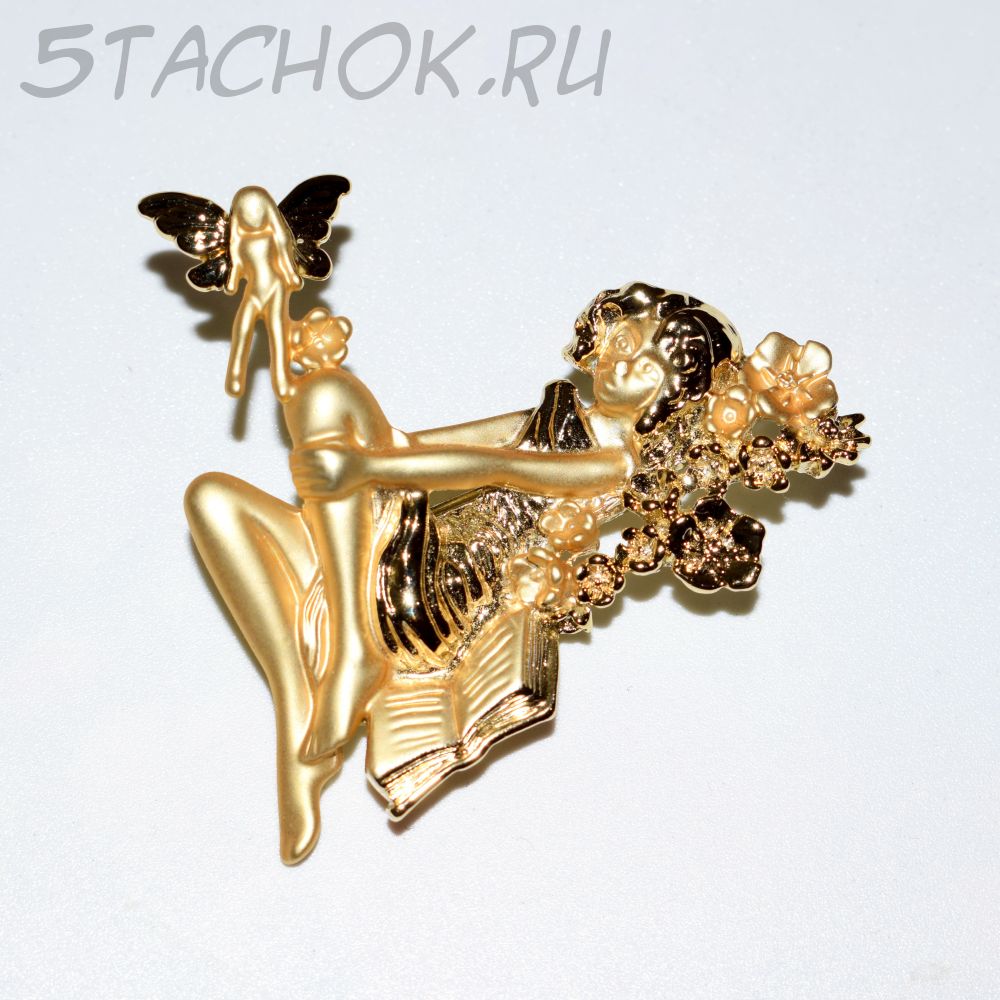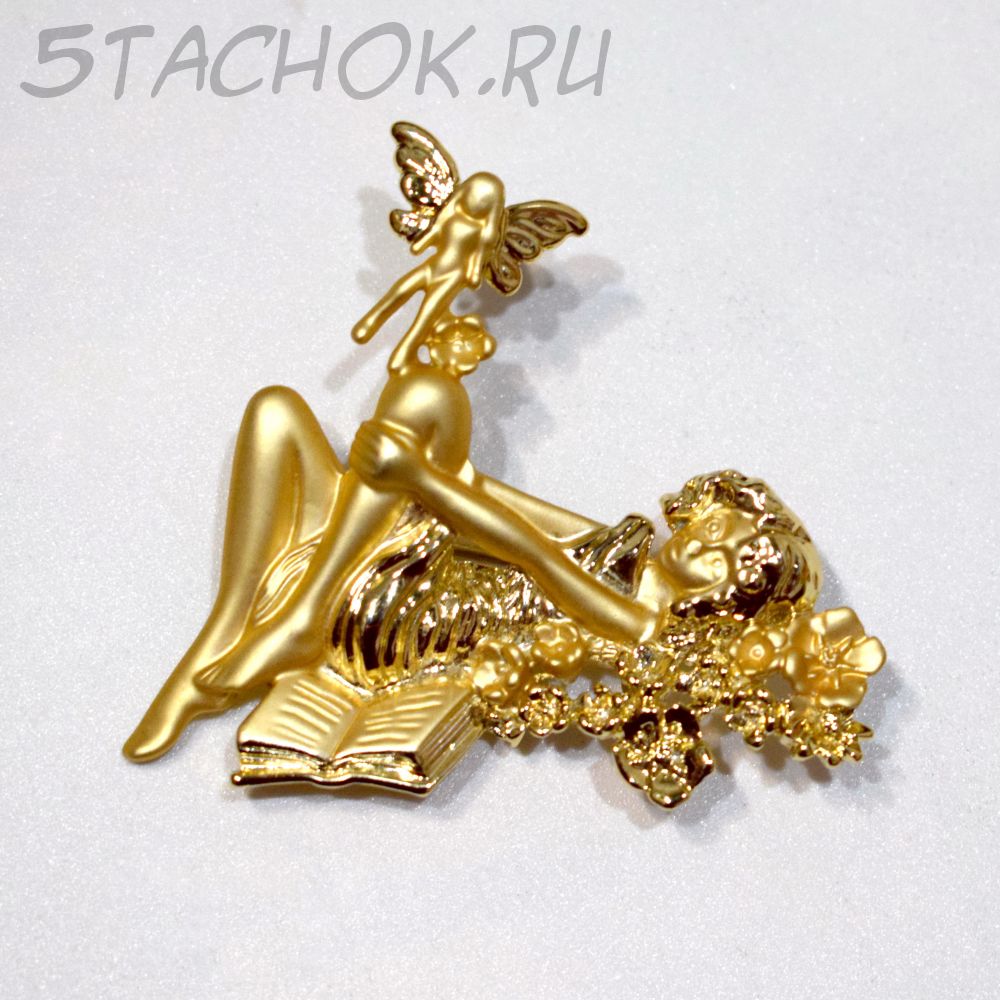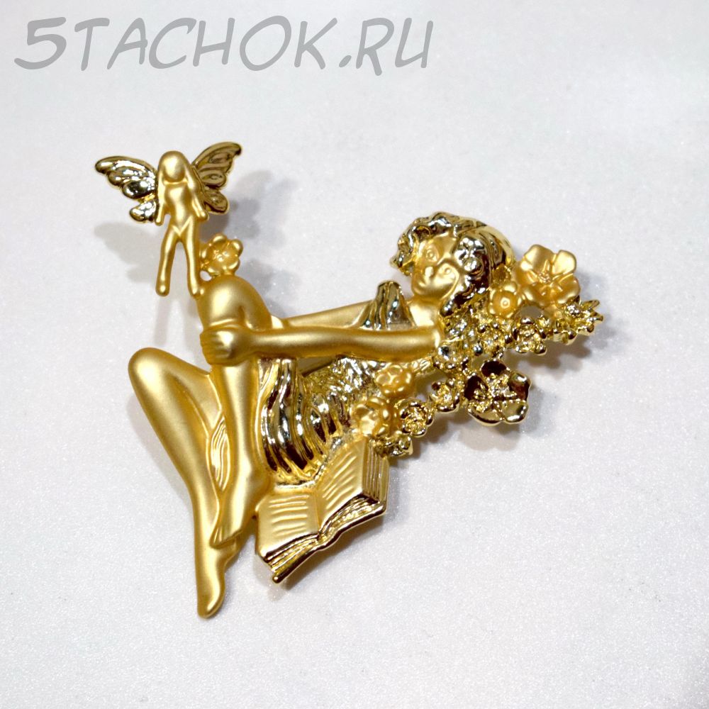 Брошь "Девушка и фея" цвет золота (AJC США)