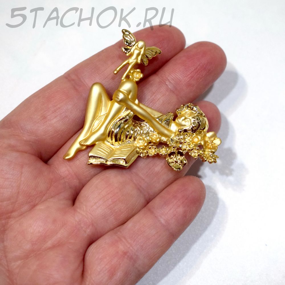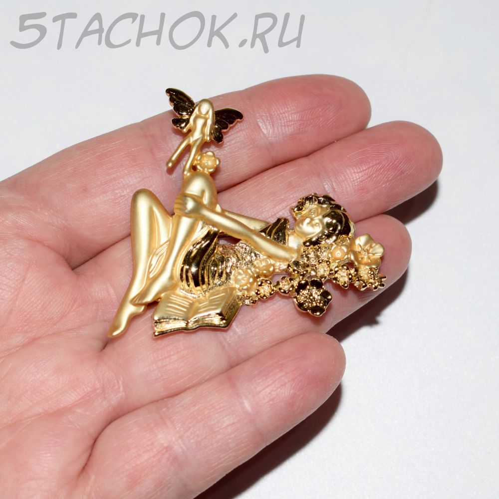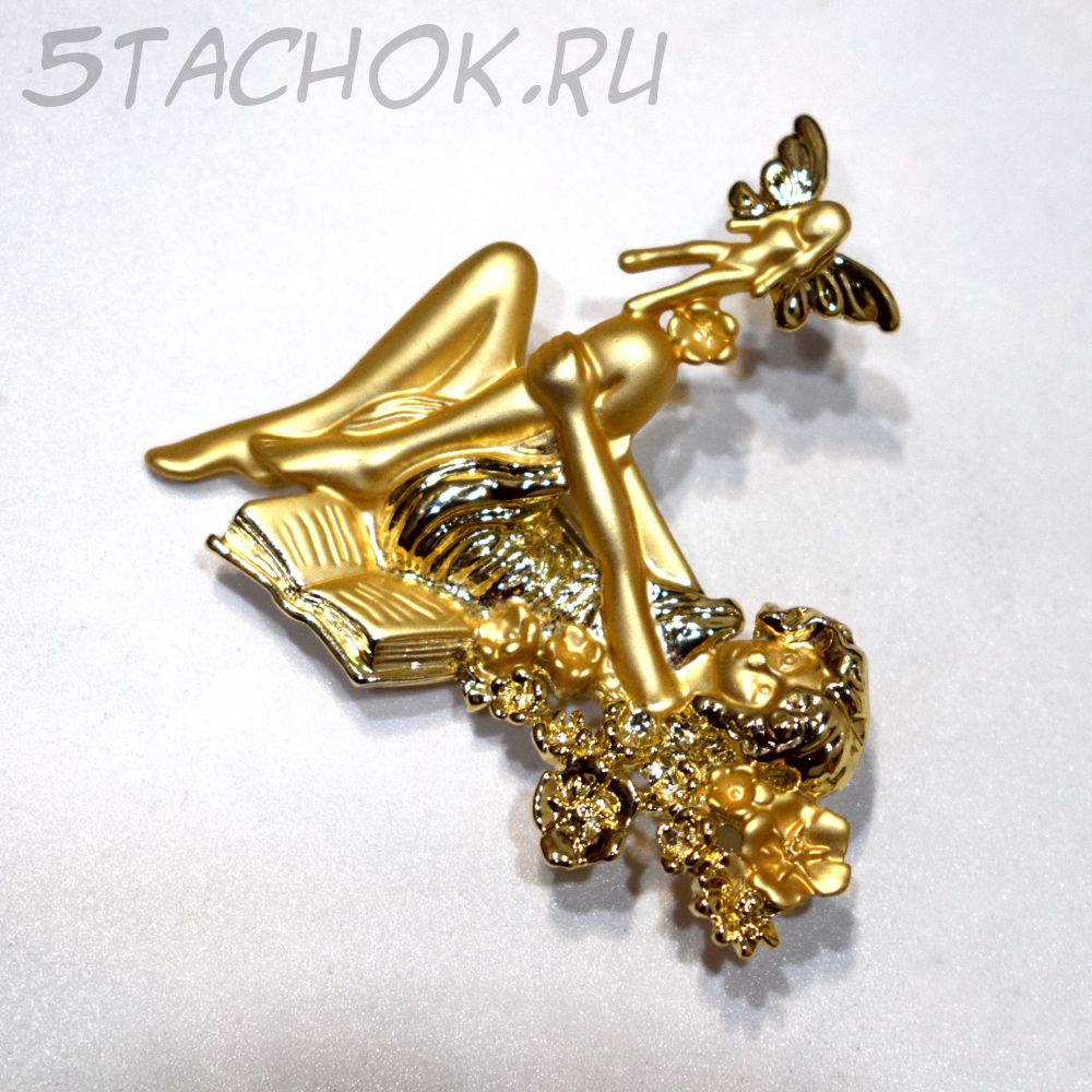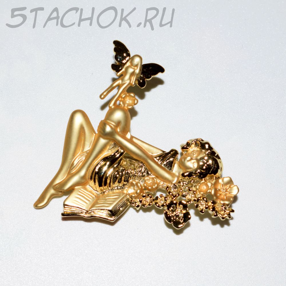 Брошь "Девушка и фея" цвет золота (AJC США)