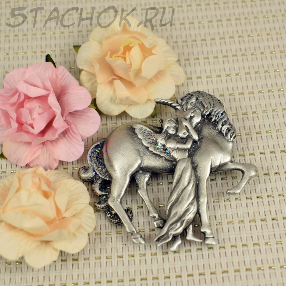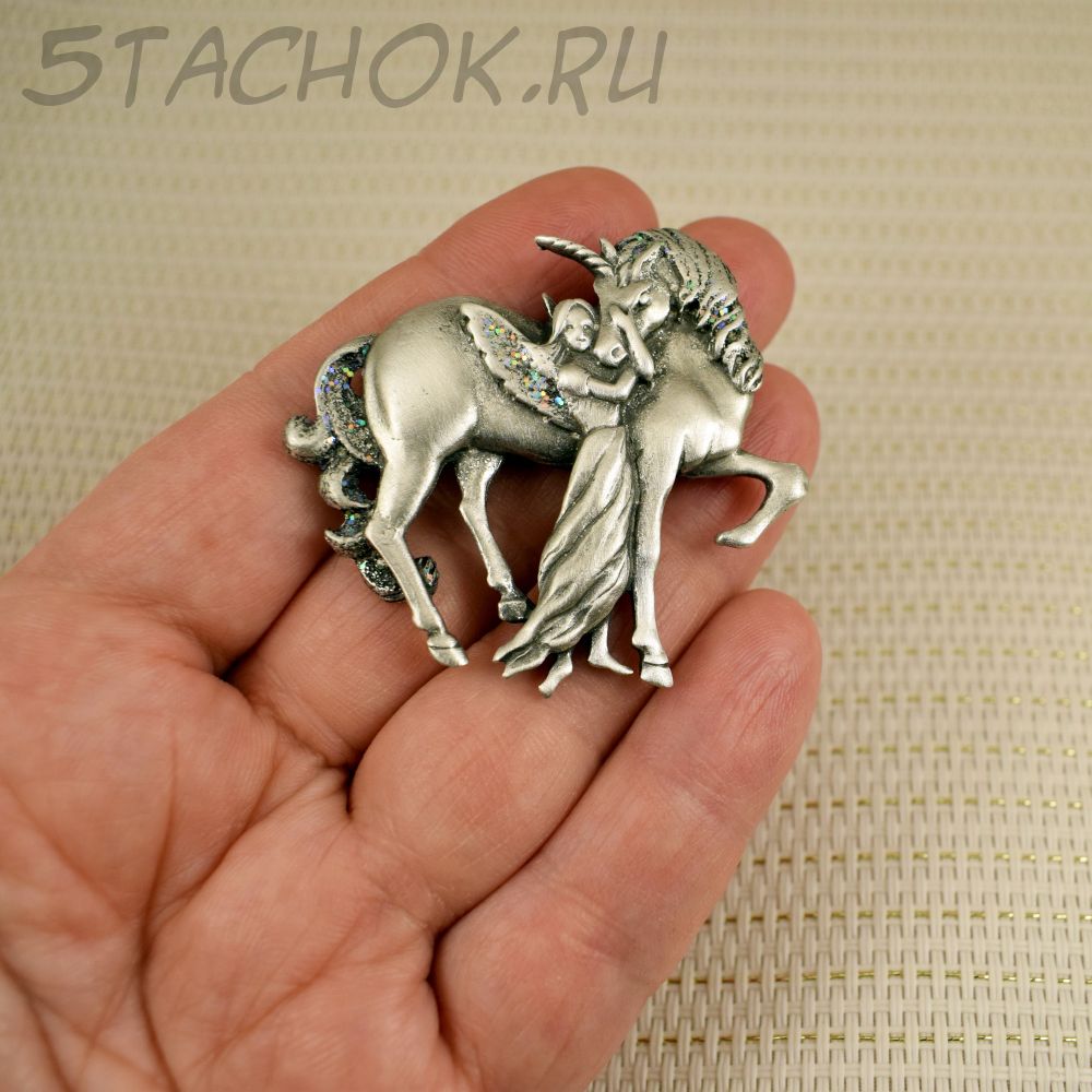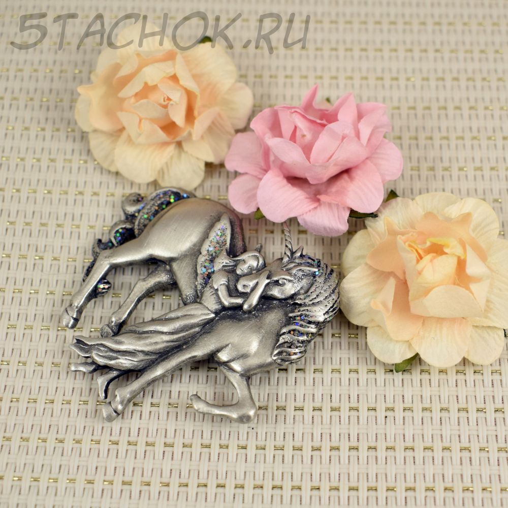Брошь "Девушка и крылатый единорог" (JJ США)