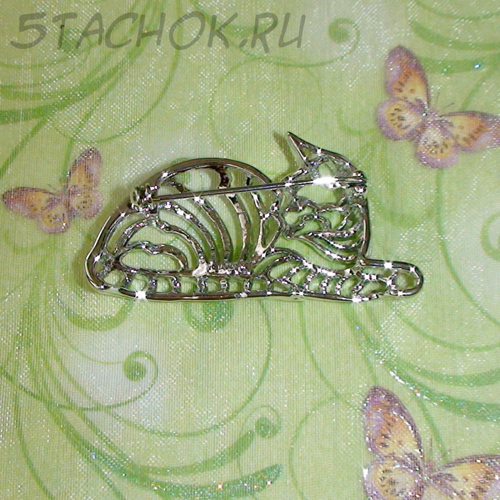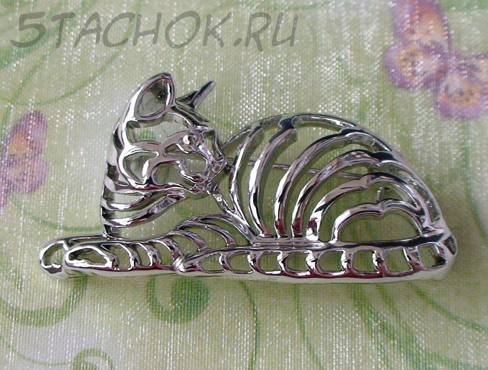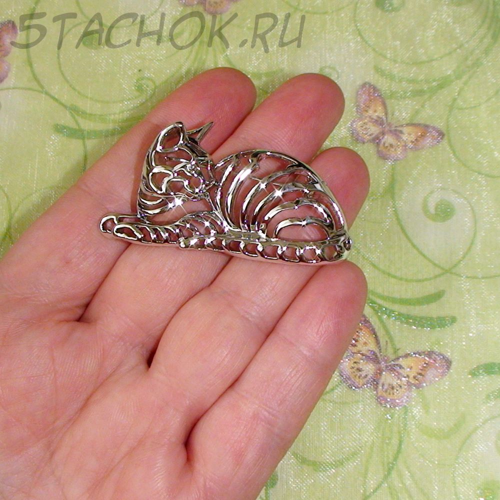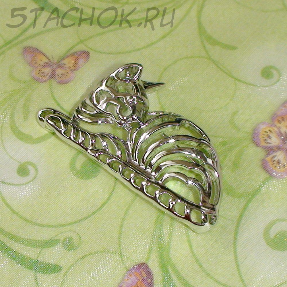 Брошь "Домашняя кошечка" под серебро