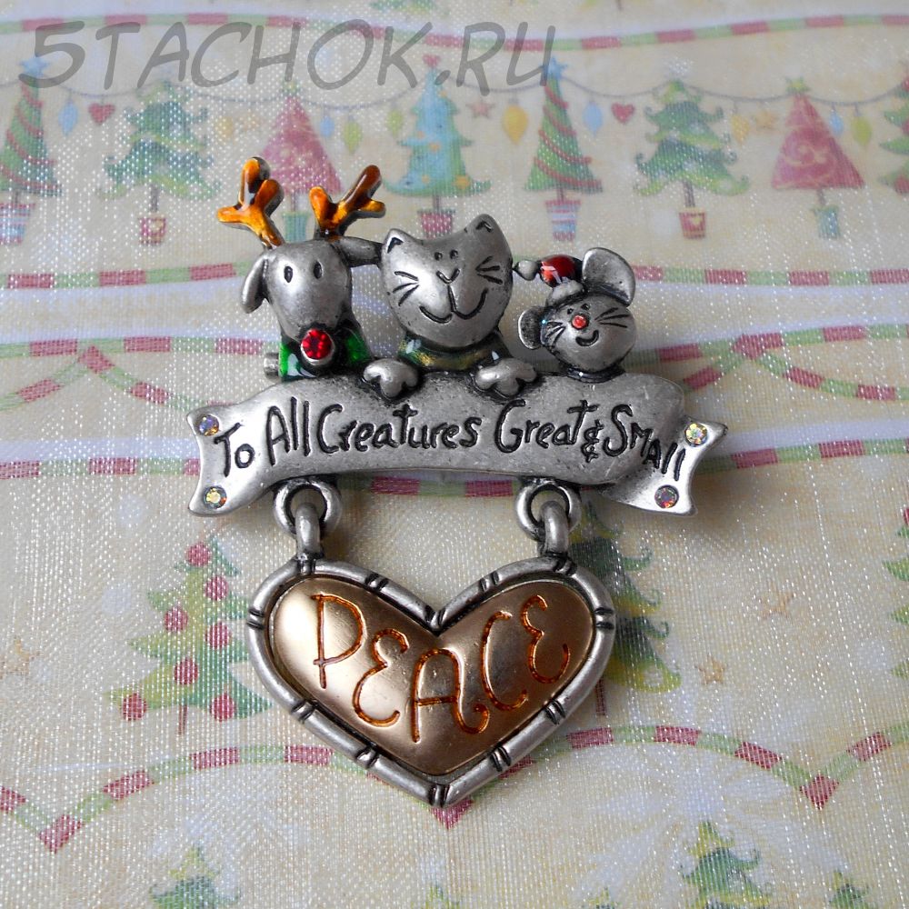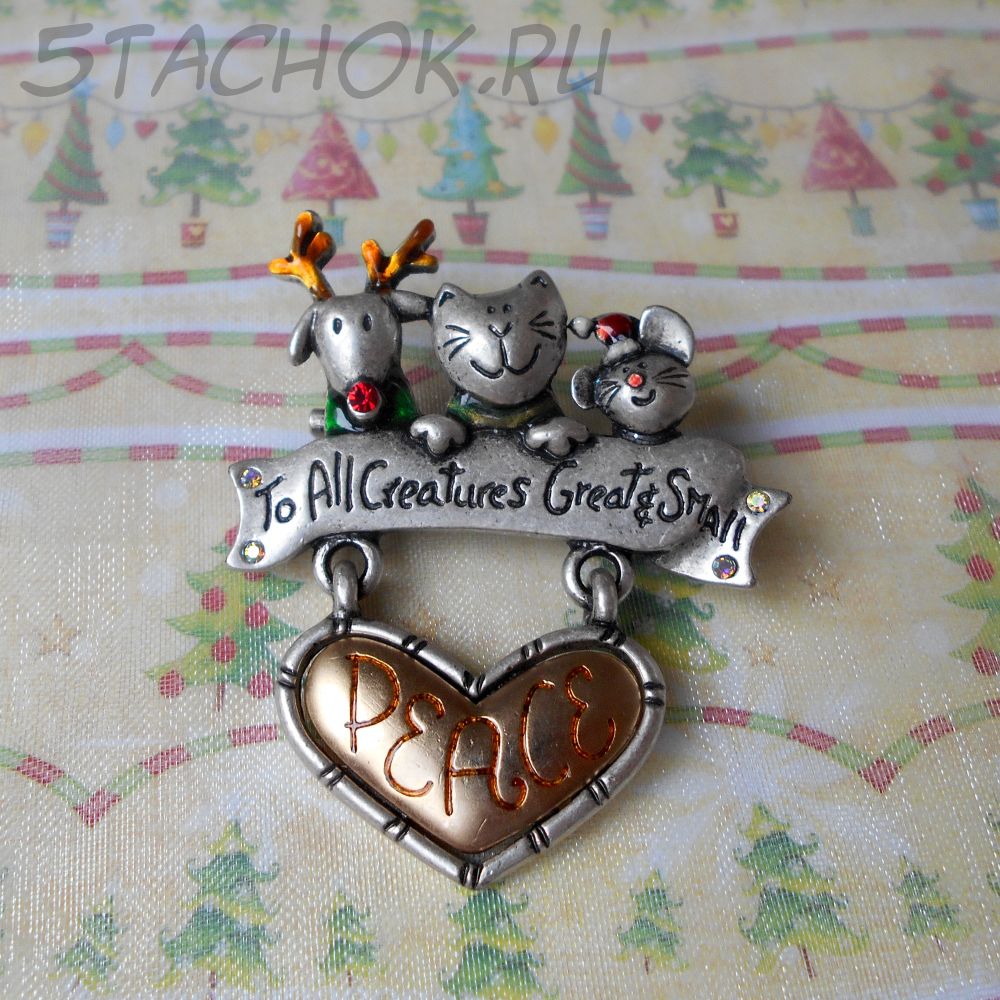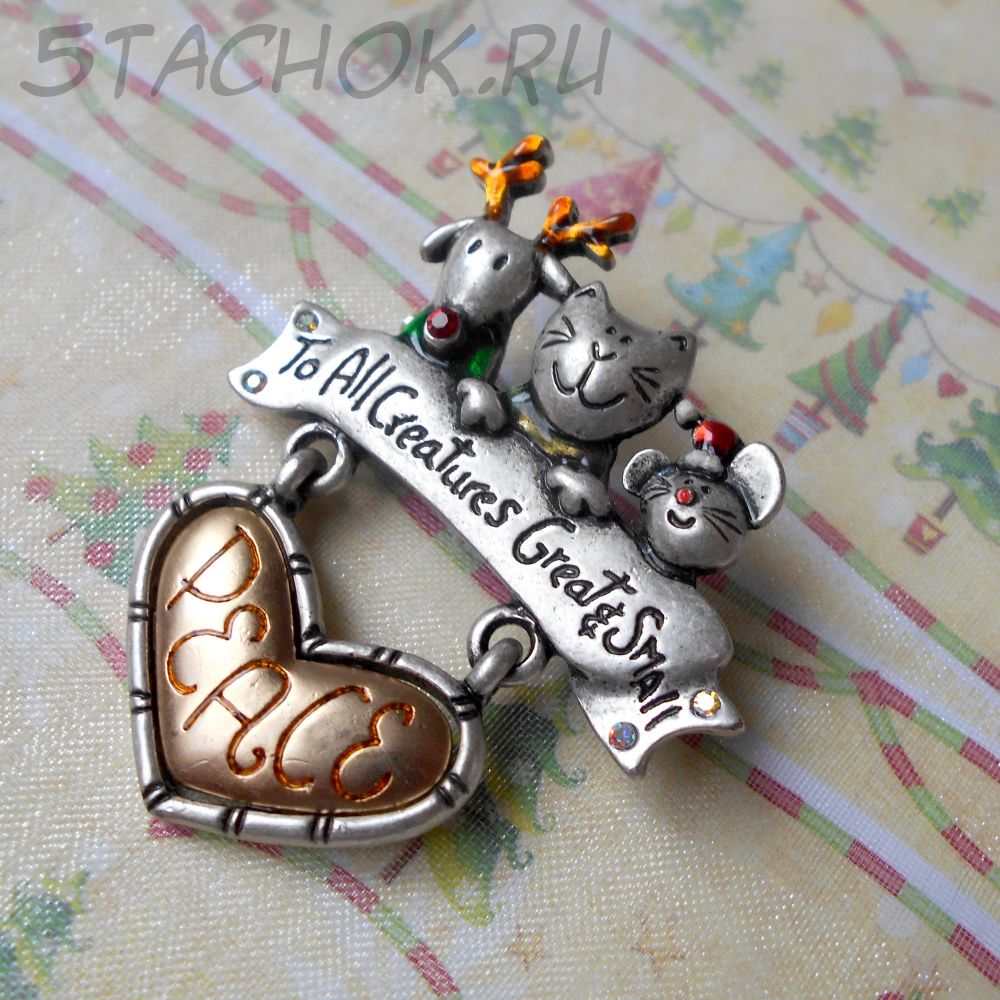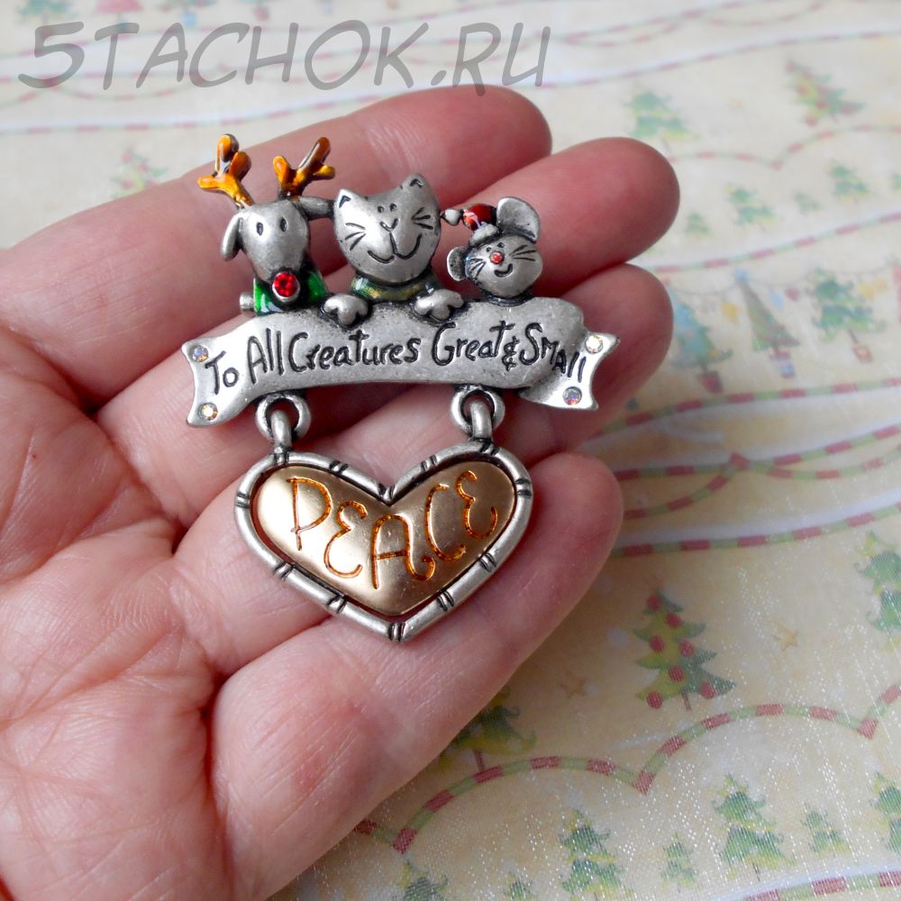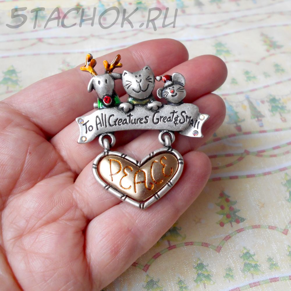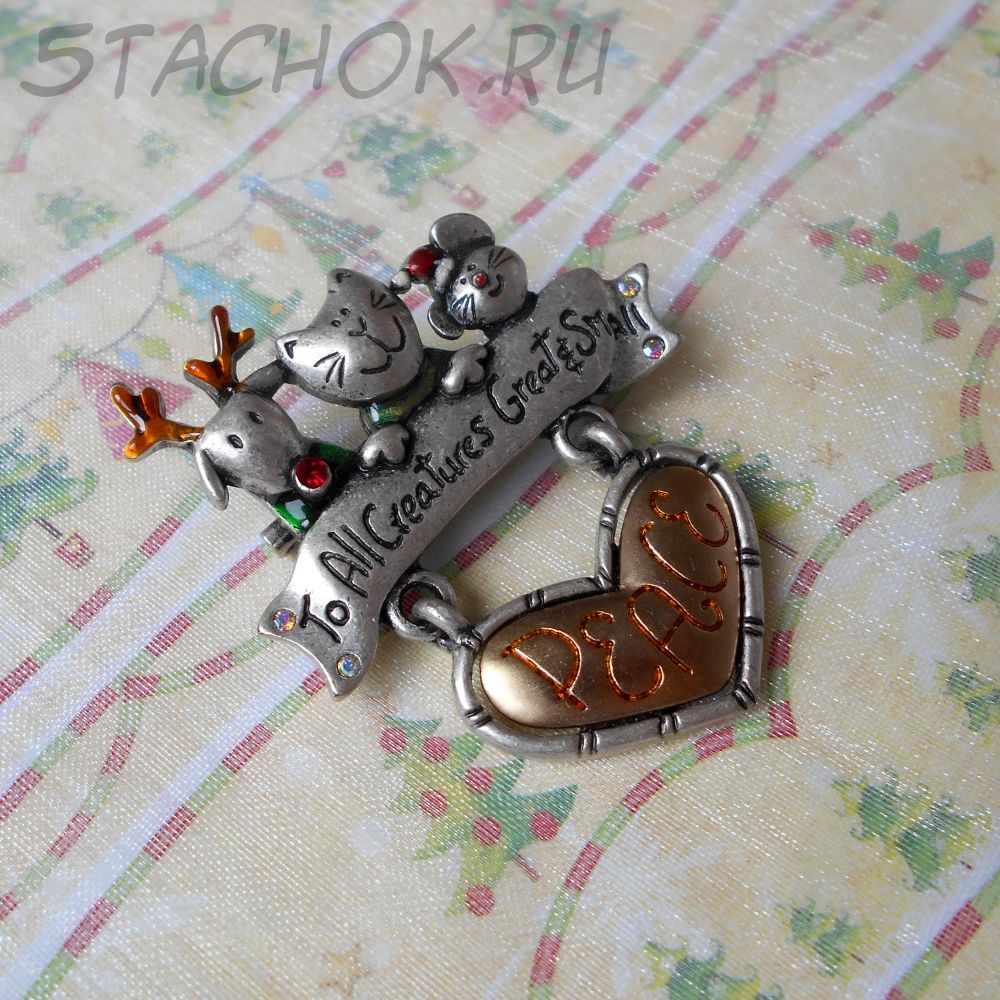 Брошь "Котик и друзья на Новый год" (AJMC США)