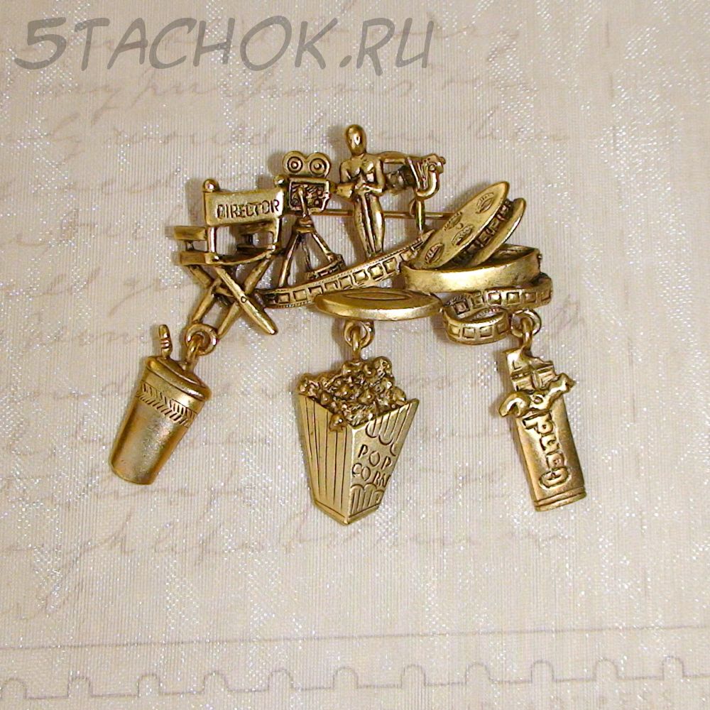 Брошь "Фильм, фильм, фильм!" под античное золото