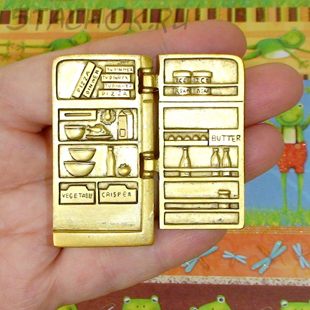 Брошь "Холодильник" под античное золото