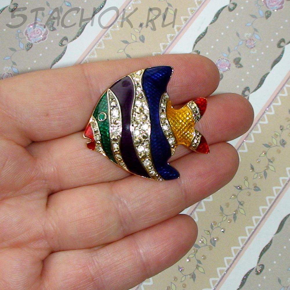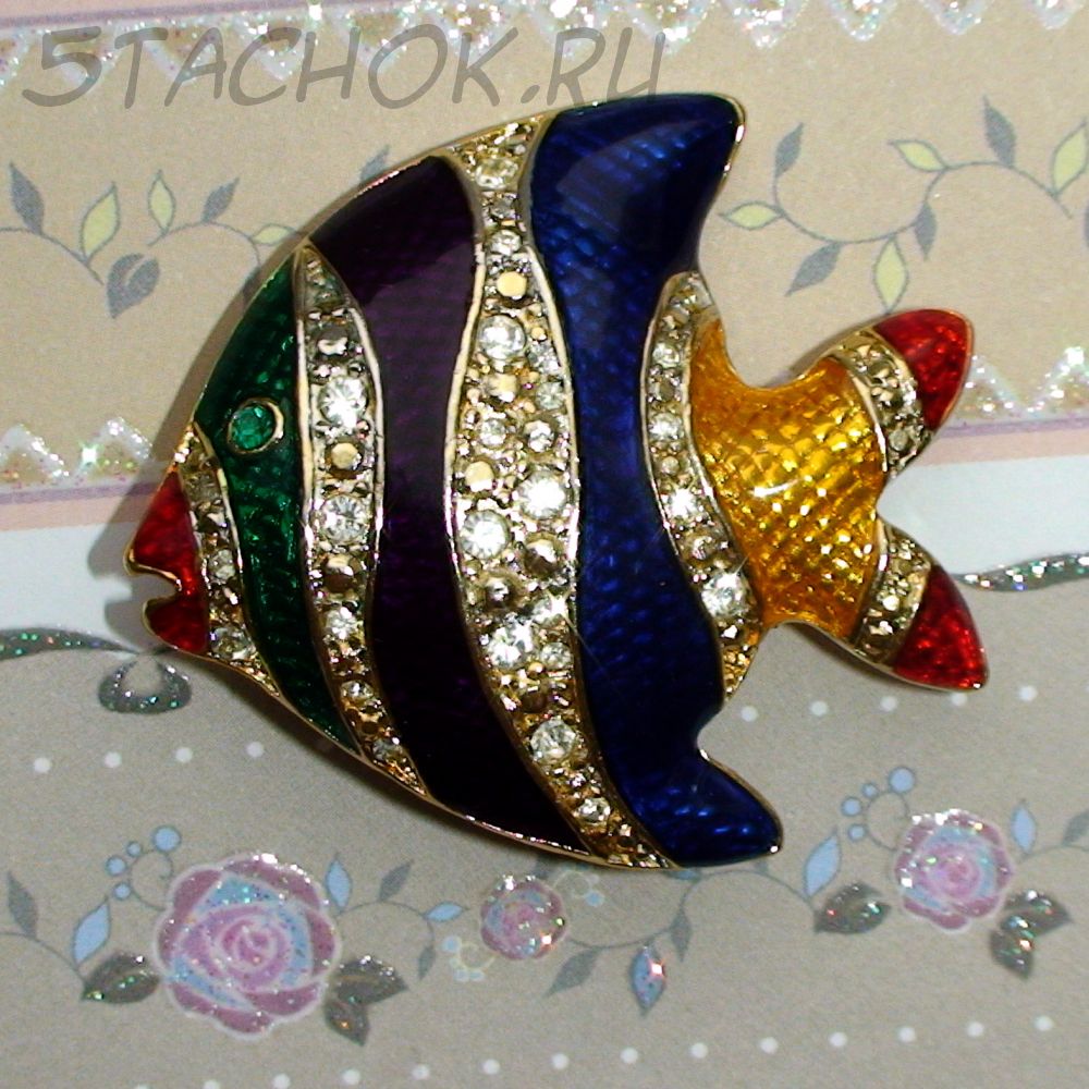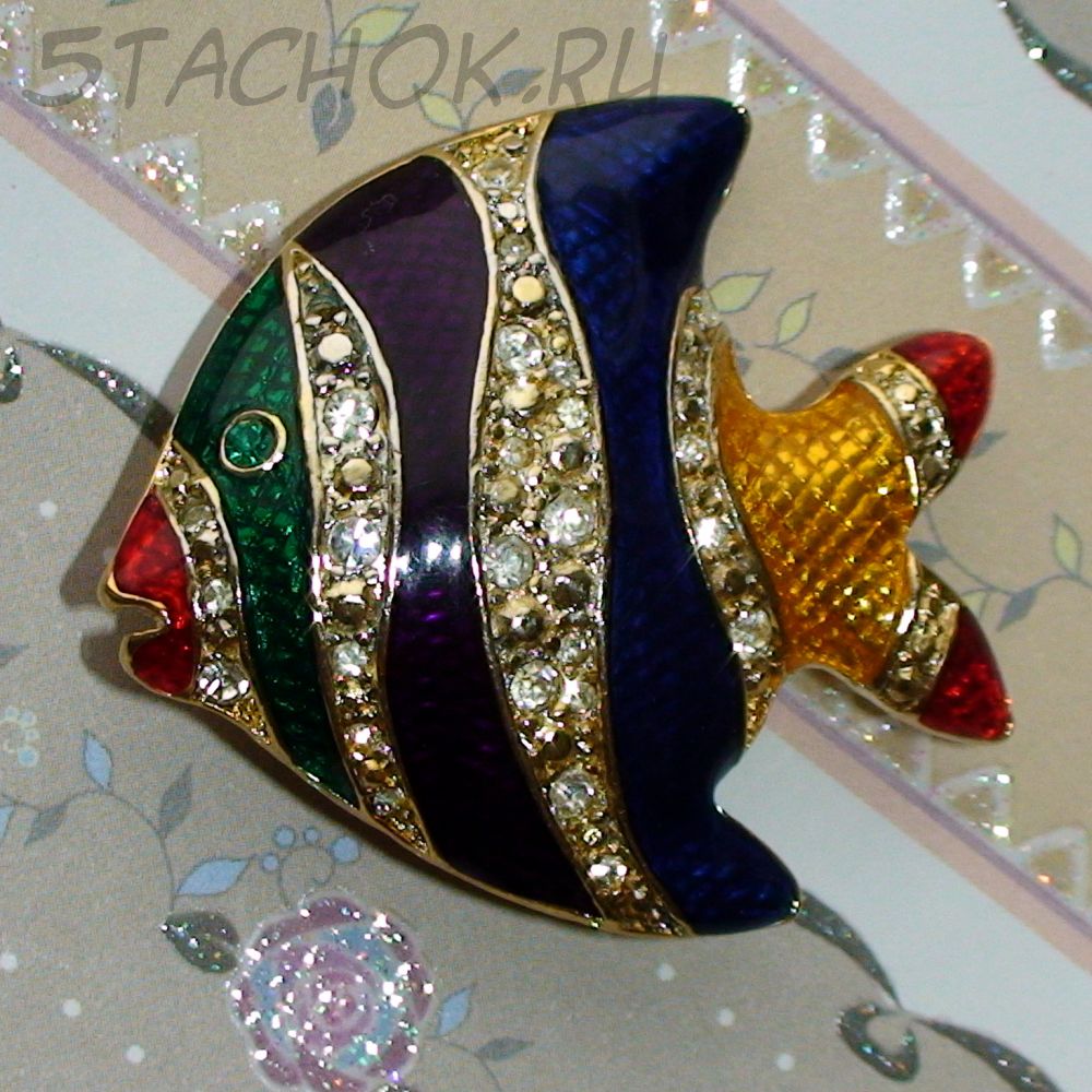 Брошь "Экзотическая рыбка" под золото/эмаль/стразы