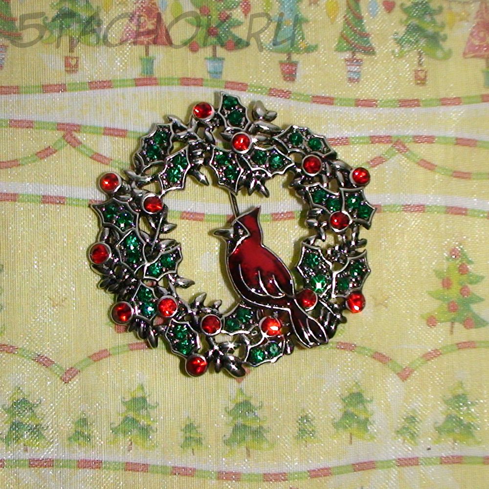 Брошь "Кардинал" под серебро, эмаль, стразы