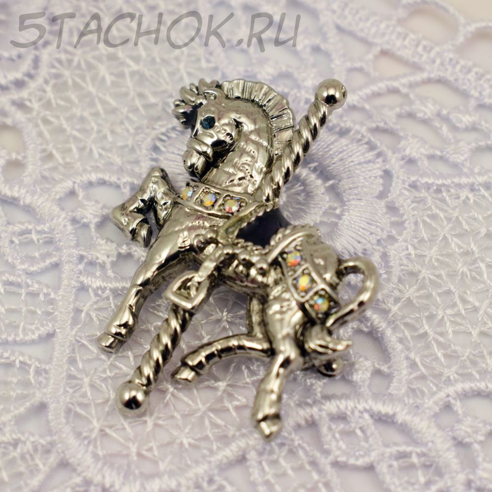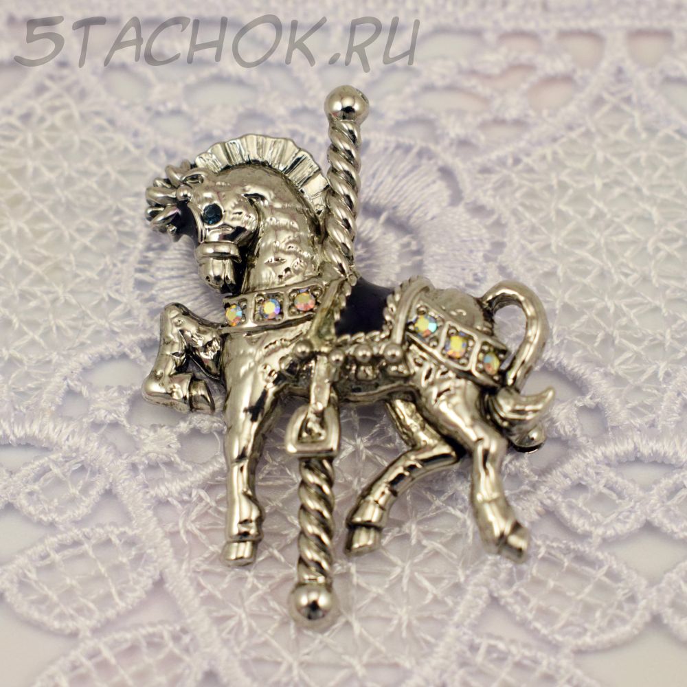 Брошь "Карусельная лошадка" цвет серебра (Danecraft США)