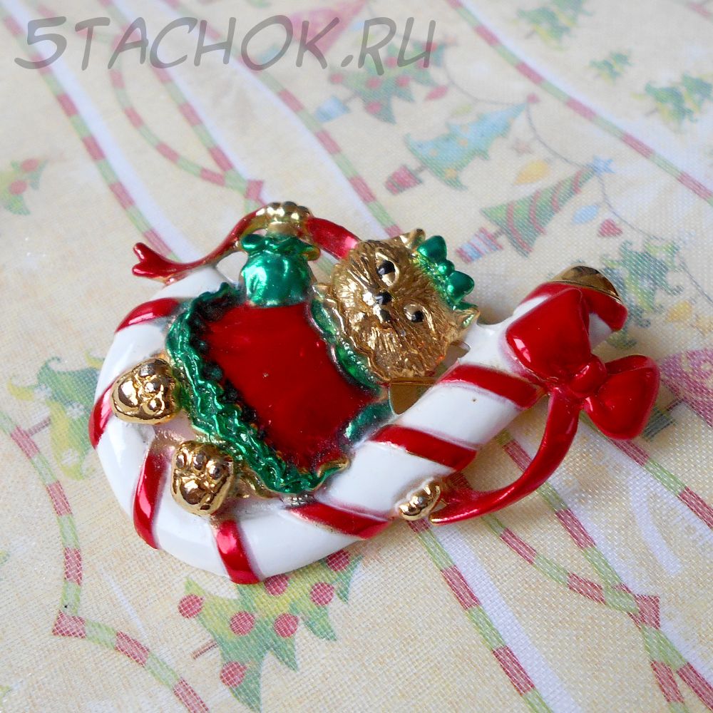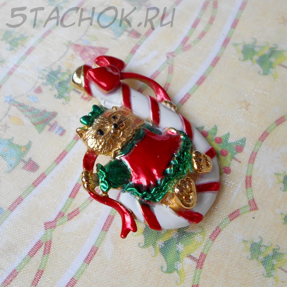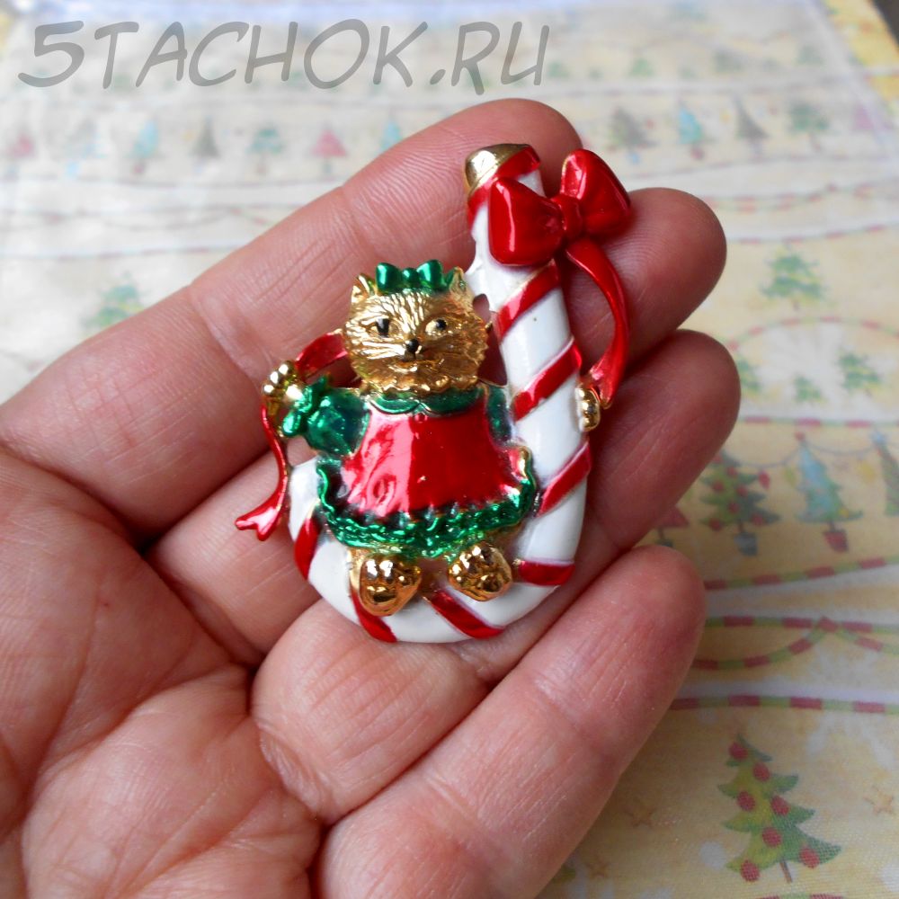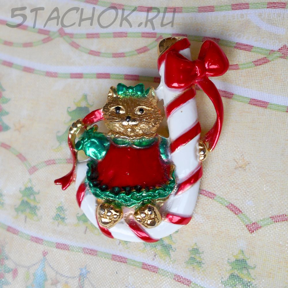 Брошь "Киска и новогодняя конфетка" (AJC США)